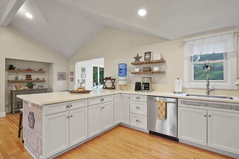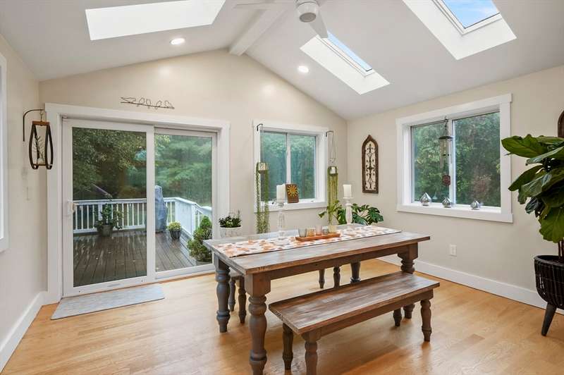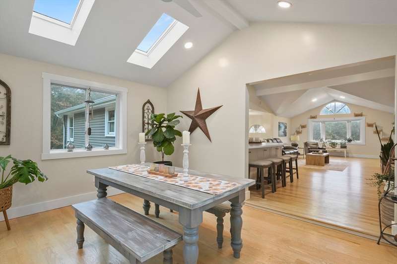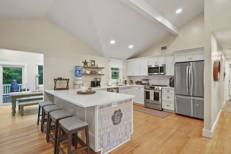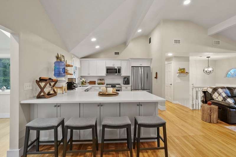 Welcome to this expansive, completely renovated (2021) move-in ready 4 bed, 2 bath raised ranch home located in beautiful Sterling. The open concept main level invites you in w/ HW floors throughout. This living room features sky-high vaulted ceilings & a bow window. The chef's kitchen offers a large breakfast bar & SS appliances. Enjoy entertaining in the formal dining room w/ its own vaulted ceilings, skylights, & convenient slider access to the back deck. Down the hall are 3 sun-filled bedrooms & a full bath. Head downstairs to discover even MORE living space, including a family room centered around a cozy, new gas fireplace (2022,) & 4th bedroom & a full bath w/ laundry. This home is truly meticulous w/ recent upgrades including a new gutter system, re-sanded front walkway pavers & an adorable new mailbox! Outside, you'll love the back deck which overlooks a private, serene backyard, front yard is professionally landscaped w/ an exquisite native wildflower garden.