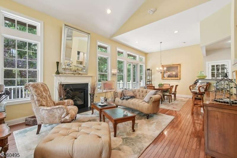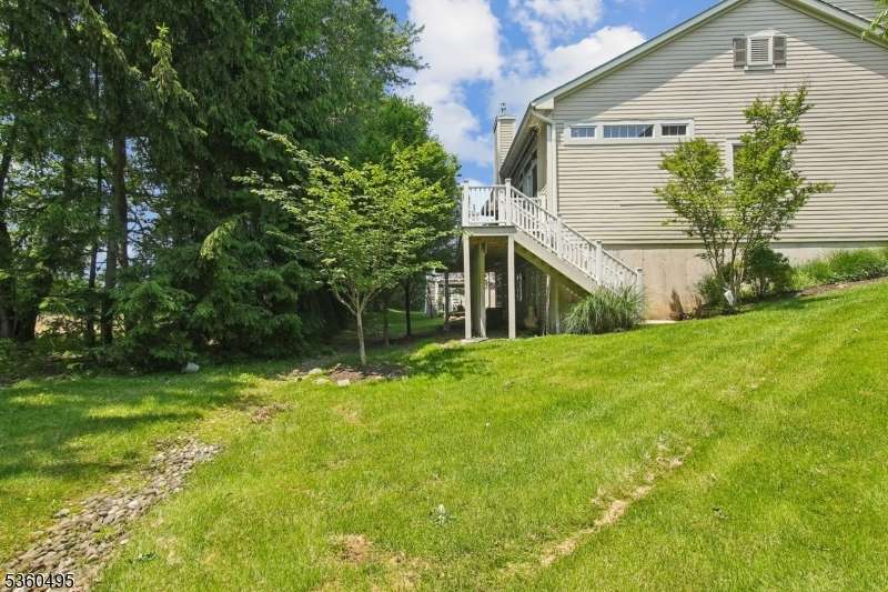 This exceptional residence offers the comfort of townhome living with the privacy of a stand alone property - and a first floor Primary suite. Presenting The "Tournament" model - one of only nine fully detached single-family homes in sought-after Sterling Green. Step into an expansive, inviting Living and Dining area anchored by a gas fireplace and a stunning wall of French doors leading to a custom oversized deck (that runs the length of the house) with stairs down to a beautifully designed paver patio overlooking a secluded wooded lot. The first-floor Primary Suite is a true retreat featuring soaring ceilings, walk-in closets, and a spacious ensuite with dual vanities. The bright, open layout continues with a generous eat-in kitchen offering abundant cabinetry and countertop space. Bonus: a gorgeous custom Powder Room. Beautiful wood floors on this level. Upstairs, a dramatic overlook to the Living room adds light and flow. You'll find two more bedrooms, a full bath, and a versatile loft/office/den space perfect for working from home or unwinding. The finished walk-out basement boasts a full bath, sliders to the lower patio, and plenty of storage, including multiple extra closets. Enjoy a charming private community w/ clubhouse and pool, close to NYC and major highways. New roof coming in 2026 (assessment paid off)