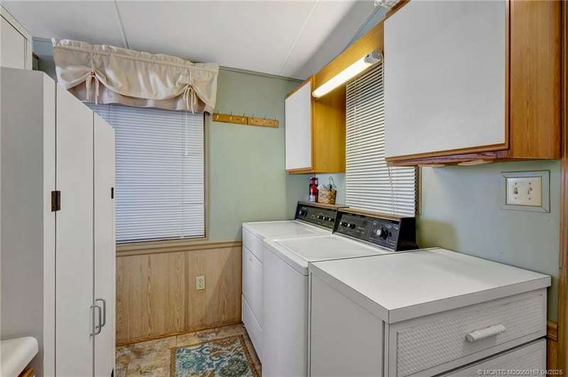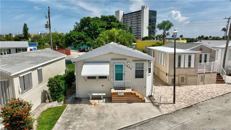 Coastal Living on S. Hutchinson Island. Enjoy the best of island life in the gated community of Holiday-Out situated between the Atlantic Ocean and Intracoastal Waterway. This charming home, currently a 1-bedroom w/space for a second, features 1 bath and sits on an oversized lot with parking for 2 cars and a golf cart. Inside, high ceilings and large windows fill the space with natural light, while the open floor plan creates a bright, airy feel perfect for everyday living and entertaining. Additional features include a separate laundry room. ceiling fans, pavered patio for relaxing outdoors. With a 2018 metal roof, 2020 A/C, hurricane panels, and being sold fully furnished, it's move-in ready as a personal retreat or income property. Holiday Oout offers abeachside pool, clubhouse and amenities, and a walking tunnel under A1A for safe and easy ocean access.
