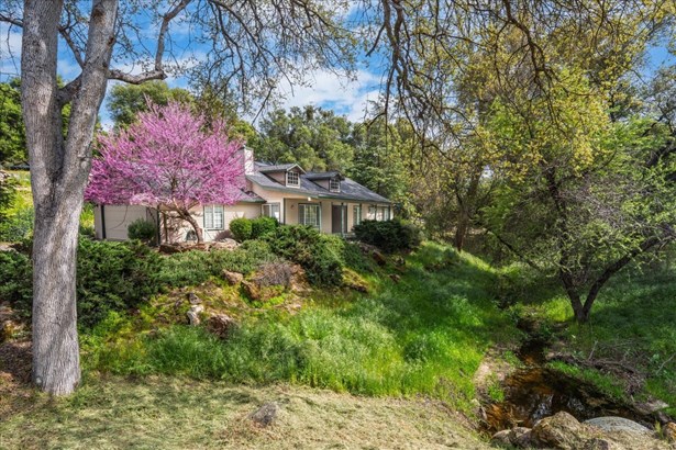 Right across from the 8th tee at Yosemite Lakes Park Golf Course, this beautiful home is in a great location to the Fairway Cafe and the main parkway. This low maintenance lot has a lot to offer with a seasonal creek, 3 patios, mature landscaping w/drip system, shed, plenty of parking and all has been well maintained. Walk inside to the Livingroom with vaulted ceilings and a fireplace to cozy up to, newer appliances, breakfast bar, dinning area, newer vinyl flooring and laundry room. There is a large master suite with a private patio and the master bath has his & her sinks, soaking tub, large shower, separate toilet area and a walk-in closet. Live the mountain life while enjoying close by dinning, grocery, gas, hiking trails, equestrian center and so much more.