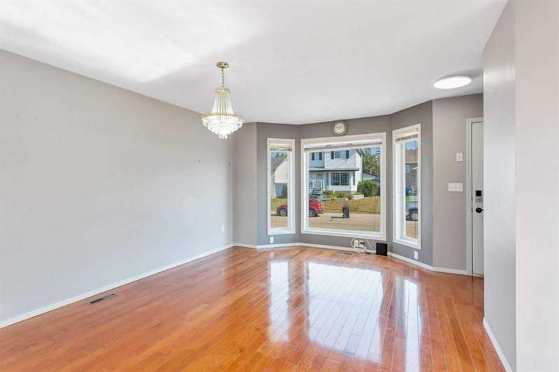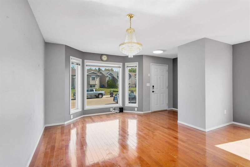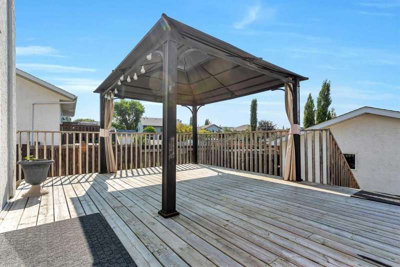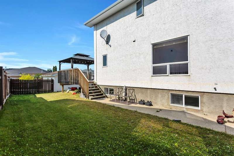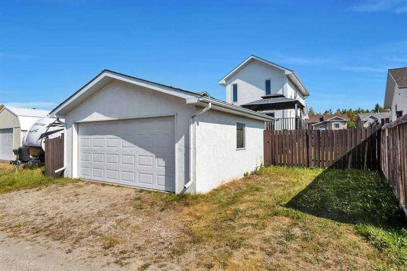 Welcome to this well maintained two storey home on the north end of Rocky Mountain House! Set up well for a family, the main floor boasts beautiful hardwood floors in your living room and leads into the kitchen/dining area with 2pc bath and access to your private yard with a nice sized deck, complete with gazebo, spacious yard (even with a double detached garage) and rear parking. The upper level offers the 3 bedrooms and 4pc main bath and finally the basement complete with family room area with bar, great to entertain in, and a 3pc bath that is paired up with the laundry services. Shingles on the home was replaced in 2017, and the hot water tank has recently been replaced. This property is ready for you to call it home!!