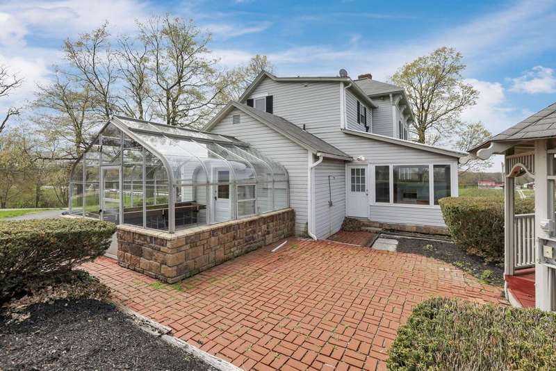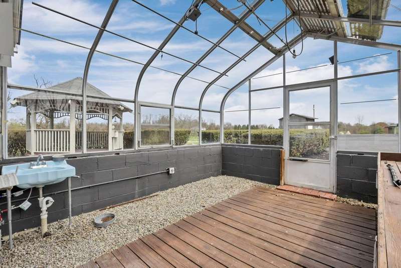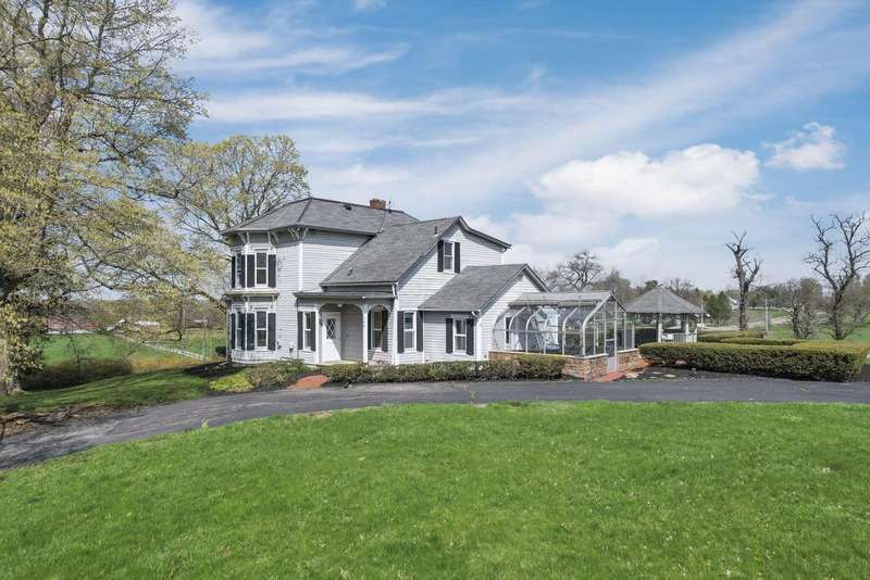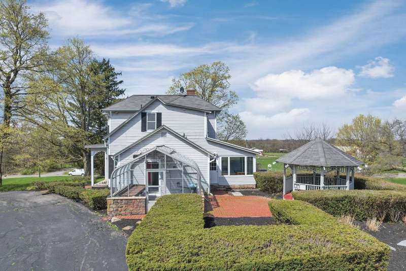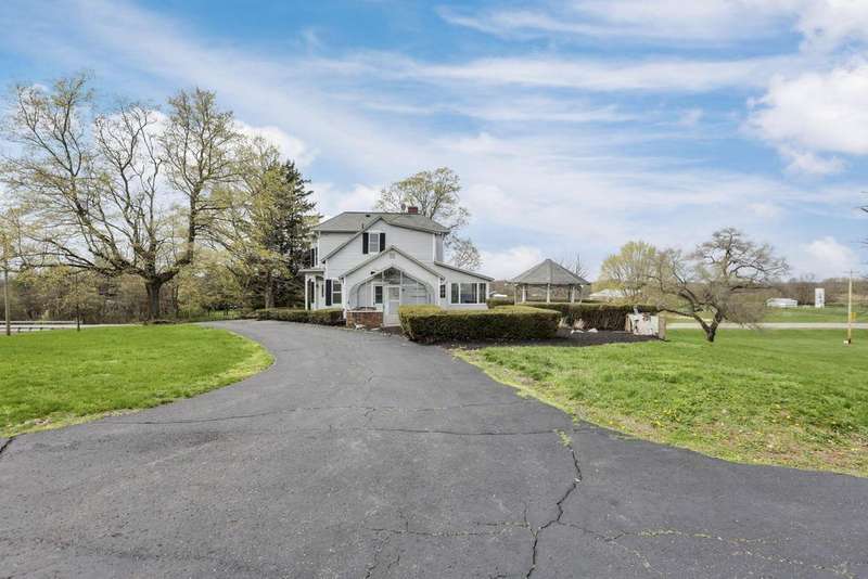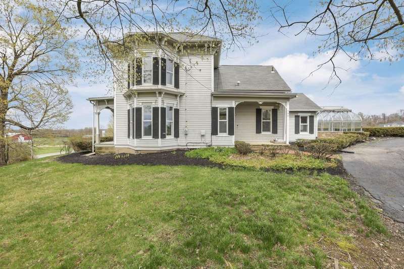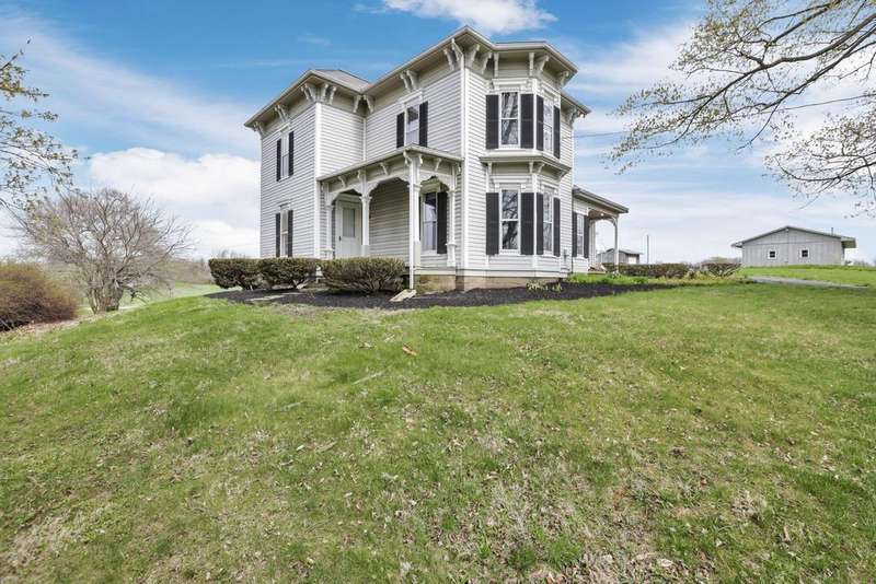 Step back in time with this charming 1875 home, perfectly situated on 6.73 acres of picturesque land with road frontage on all 4 sides of the property. Featuring 4 spacious bedrooms & 2 beautifully updated bathrooms, this home blends classic character with modern convenience. The updated kitchen is a chef's delight, while the original woodwork and doors throughout the home add timeless appeal. The property includes a well-maintained barn with 5 horse stalls, a 30x50 3-car heated garage, a 60x120 indoor arena, a detached 1 car garage, a 36x84 barn & a 3-sided barn. Great rental potential. Other features include a sunroom, gazebo, 2 fireplaces & greenhouse which is attached to the backside of the house & offers the perfect space for gardening year-round. With its unique combination of historic charm, modern updates & expansive outdoor amenities, this property offers a rare opportunity. Schedule your showing today!