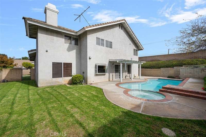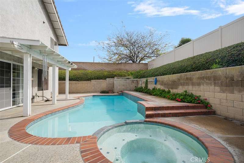 Located in a quiet enclave of Yorba Linda, this charming home offers a rare opportunity to make it your own or renovate to unlock its full potential. The welcoming layout is filled with abundant natural light, creating a space that feels both open and inviting. Step inside to find vaulted ceilings and a generously sized living and dining room. Continue through to the family room, where a beautiful brick fireplace serves as the centerpiece for relaxing evenings or gatherings with family and friends. The family room flows effortlessly into the kitchen, which overlooks the backyard complete with a pool and spa. The home also features a convenient downstairs bedroom and bathroom. Upstairs, the primary suite boasts vaulted ceilings, a walk-in closet, and a cozy sitting area with its own fireplace. Three additional bedrooms and a full bathroom complete the upper level. Situated on a flag lot, this property offers a long private driveway and a three-car garage—providing both privacy and ample parking.