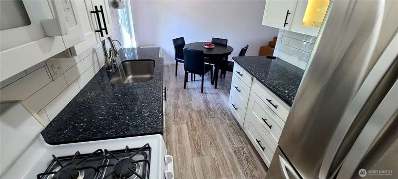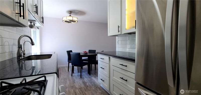 Total renovation for this 2-bedroom top-floor unit.Engineered oak/cork flooring throughout. Sun-filled living with electric fireplace and wall cabinetry storage. Stunning white lighted cabinetry & subway tile, granite counters, and soft-close drawers. Newer SS refrigerator and dishwasher & reverse osmosis for stainless sink. Storage bench in built-in nook.Amazing custom storage in bedrooms with walk-in for primary + beautifully tiled bath. Large Washer/Dryer. Fresh interior painting. Optional 2nd space parking available! Beautiful outdoor pool & grounds. HOA includes W/S/G. New roof, exterior painting and paving in 2018. Pre-Inspection done! Minutes away to Harbour Pt, Old Town, Waterfront and ferry. High demand Mukilteo Schools.