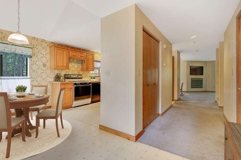 Welcome to 1 Balsam Court, nestled in the highly sought-after Bryant Woods community in Atkinson, NH! Available now for the first time ever, this 2-bedroom, 2.5-bathroom condominium situated on an enviable corner lot that has been maintained by its original owner, now presents a unique opportunity for those looking to add their personal touch. The main level features a sunny eat-in kitchen with ample cabinetry and counter space, and a pantry for added storage. The living and dining areas share a cozy gas fireplace. Sliding glass doors from the dining area lead to a private deck overlooking a large garden area surrounded by woodlands—great for morning coffee or evening relaxation. The second level offers two bedrooms: a spacious primary bedroom suite with full bath and generous walk-in closet, and an additional bedroom with separate full bath that provides comfort and flexibility. One of the standout features of this unit is the walkout unfinished basement, providing abundant storage space or the potential for future expansion. The attached one-car garage offers added convenience. Don’t miss your chance to own a piece of Bryant Woods! As a Bryant Woods resident, you’ll have access to fantastic amenities including scenic walking trails, a clubhouse, fitness center, in-ground pool, tennis courts, garden space, and more. All this, in a prime location just minutes from shopping, dining, and Routes 125 & 495.
