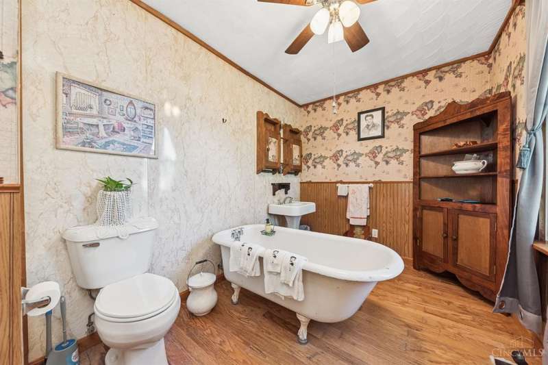 In a Word....Adorable! Blt. in 1995, this unique one owner home is move in ready! Freshly painted thru-out and deck & front porch. New Back door & storm door. Nine brand new windows. Roof 2023, Central Air 2022, Furnace 2022. The antique wood powered stove stays along w/a gas powered oven-range. The claw foot bath tub in the Owner's suite along with the stone FP and shower in the Utility add character to this one of a kind home. Front door has side lites. Attic storage. Blt. in wardrobe in upstairs BR. Window box in the Dining Room. Blt in shelving on the Family Room! The garage is 42x24 w/a 42x6 lean too attached. 15x12 shed w/a wood flr. and a 20x15 shed w/a concrete flr. Come take a closer look!!!!