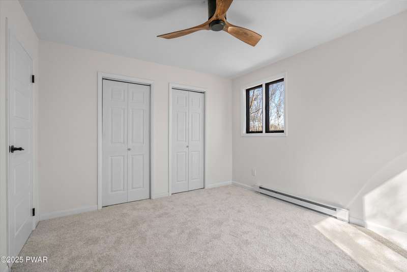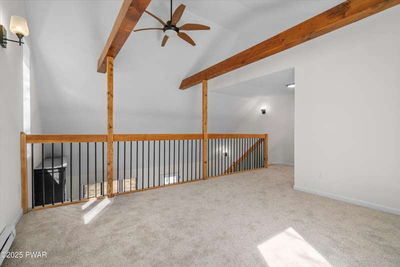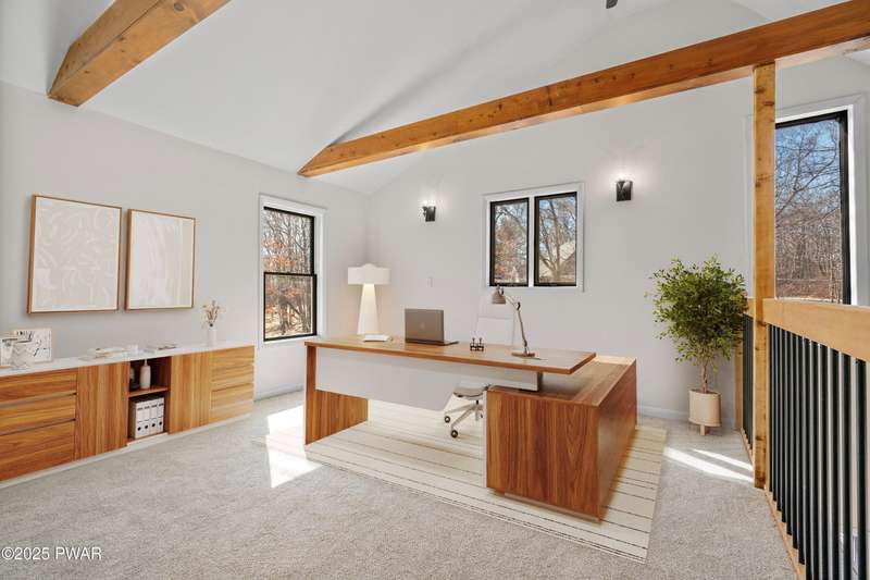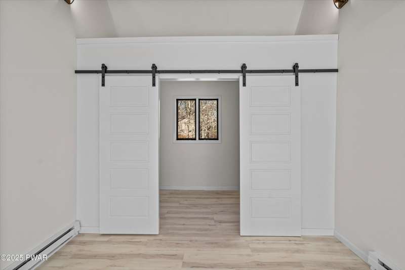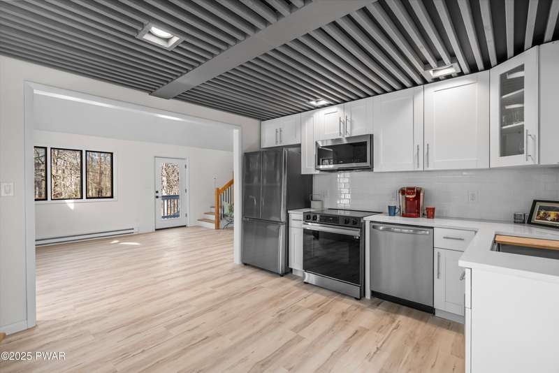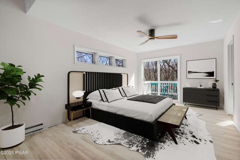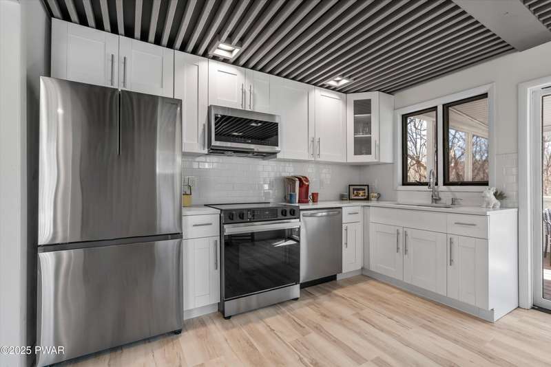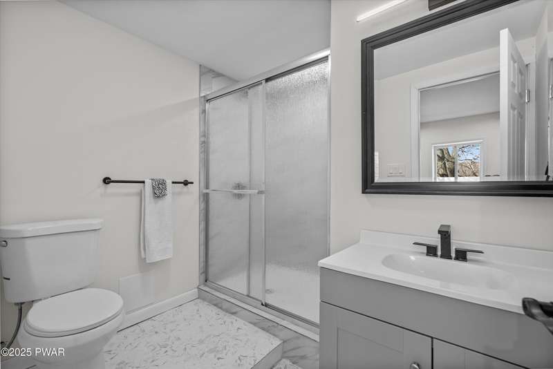 Welcome to the good life in Hemlock Farms! This completely remodeled home is a true gem, designed for both comfort and privacy. Paired with an open-concept main living area, find a beautiful, modern fireplace that creates a cozy centerpiece. Following the custom-crafted kitchen ceiling that leads directly to a peaceful screened porch--perfect for morning coffee or evening relaxation.The main floor features the primary bedroom, complete with a personal balcony, and closet so spacious it could easily double as an office or nursery. A convenient half-bath on this level is perfect for guests. Upstairs, a spacious loft provides an ideal flex space, along with a guest bedroom and full bath. The lower level is an entertainer's dream, featuring a charming coffee bar, a family room with a propane stove, a third bedroom, and a third full bath. With an attached garage, this home truly has it all.