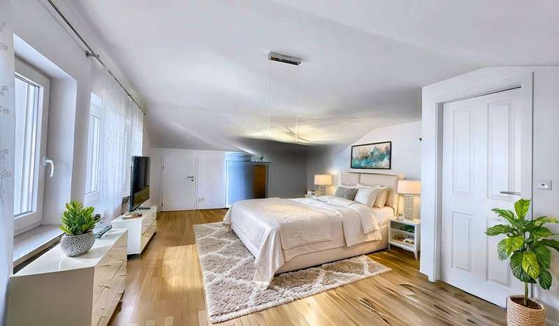 A property that enchants at first glance - and exceeds all expectations at second glance. This spacious home in a fantastic central location in Oberstaufen not only offers an unobstructed view of the Allgäu mountains, but also enormous potential for the future. The generous window fronts, which flood the rooms with light and open up views of meadows and peaks, are already impressive. The heart of the house is the spacious living and dining area with fireplace, which provides warmth and comfort on cold winter days. Several rooms, spread over the first floor, top floor and a separate granny apartment, open up countless possibilities for use - whether as a vacation home, multi-generational house or spacious home. Important renovations such as the renovation of the roof and windows of the granny apartment have already been carried out. With modern heating and a stylish interior renovation, a real gem can be created here: A home that perfectly combines tradition and comfort. The location is simply unbeatable: Centrally located in Oberstaufen, with quick access to hiking trails, ski resorts, golf courses and Lake Constance, this property combines nature experience and quality of life in a unique way. A plot of over 1,300 m², a large terrace, bright rooms and the incomparable charm of the Allgäu Alps make this house a rare opportunity for anyone looking for generosity, nature and potential.