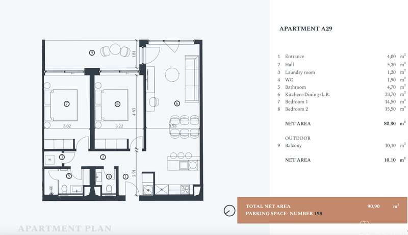 The main resort building houses 179 apartments of various types. All apartments feature private terraces with views of the sea or Mediterranean greenery, while the interiors are designed in a contemporary style with an emphasis on elegance and natural materials. Each unit is equipped with a modern kitchen, bathrooms with underfloor heating, washer-dryer, smart TV system, safe, and high-speed internet. Great attention has been paid to details that provide the comfort of a home and the luxury of a hotel at the same time, from premium materials to personalized services such as baby equipment or pet-friendly amenities upon request.