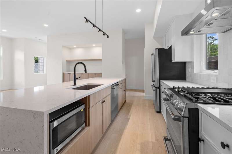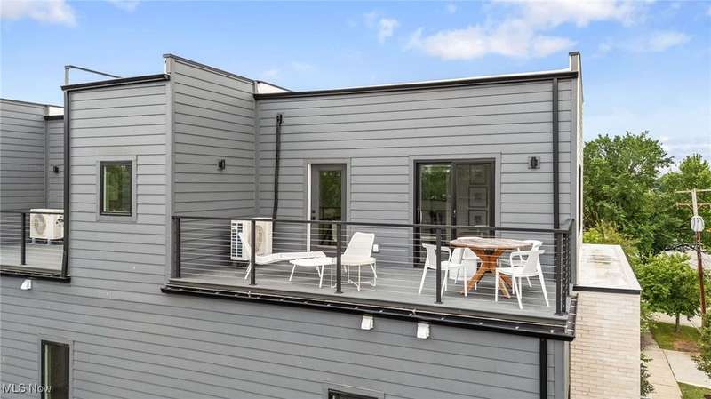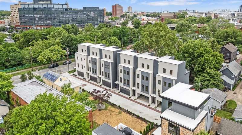 Stunning new construction in a prime location- it doesn't get better than this! Welcome to Burik Luxury Townhomes, a sought-after new build project in the charming west side neighborhood of Duck Island. Six total townhomes to make up an exclusive community, just minutes from downtown Cleveland. These homes have an oversized two-car garage, with an optional bonus room on the first floor. The second floor is a true open floor plan with wide plank LVP flooring throughout. The spacious living room showcases a subtle but impactful electric fireplace with venetian plaster. The kitchen features premier custom cabinetry created by Lane 17, quartz countertops, a pantry, and a GE Cafe appliance package. Prepare gourmet meals on your 11 foot waterfall island and have plenty of room to entertain. Upstairs is the primary suite with a double vanity, beautiful tile shower with glass door, and a spacious walk-in closet. Additionally, the third floor has another bedroom with its own bathroom and tub shower as well as convenient laundry access. The top floor is the real showstopper with a west bar and private rooftop deck nestled in a quiet location. Additional bedroom and full bath with a gorgeous tile shower. Not only is this project well thought out and designed, it allows buyers to take advantage of the full 15 year tax abatement- one of the last chances for this! A luxury new build in a private community, walking-distance to all the best spots in Cleveland.