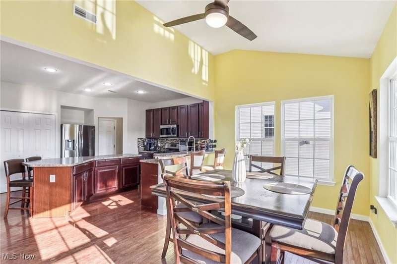 Welcome to the Meadows of Oakwood in Bedford. This 4 bedroom 3.1 bathroom colonial offers a finished, walk out basement and expansive deck and patio with beautiful water views of the neighborhood pond. Upon entering you will see the formal living room is currently being purposed as an office in the front of the home. The family room has a cozy gas fireplace and open floorplan connecting the eat in kitchen with stainless steel appliances and granite countertops, to the morning room full of natural light stepping out to the oversized deck. Upstairs you will find all 4 bedrooms, and 2 full bathrooms plus the laundry room is well designed on the second floor. The spacious owners suite has a large walk in closet and glamour bathroom ensuite. The lower level is newly finished (2025) for more family entertaining space, 3rd full bathroom and walks out to the back patio where you will enjoy premium views of the pond for a peaceful retreat for your family guests. The 2 car garage has a new exterior door and an electric car charger. UPGRADES: Finished basement 2025. Powder room upgraded in 2021. LVT flooring added to one bedroom upstairs. Electric car charger installed in the garage.