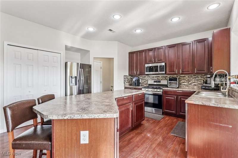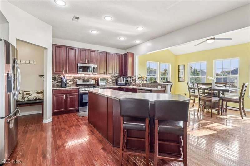 Welcome to the Meadows of Oakwood in Bedford. This 4 bedroom 2.1 bathroom colonial offers a partially finished, walk out basement and expansive deck and patio with beautiful water views of the neighborhood pond. Upon entering you will see the formal living room is currently being purposed as an office in the front of the home. The family room has a cozy gas fireplace and open floorplan connecting the eat in kitchen with stainless steel appliances and granite countertops, to the morning room full of natural light stepping out to the oversized deck. Upstairs you will find all 4 bedrooms, and 2 full bathrooms plus the laundry room is well designed on the second floor. The spacious owners suite has a large walk in closet and glamour bathroom ensuite. The lower level is partially finished for more family entertaining space and walks out to the back patio where you will enjoy premium views of the pond for a peaceful retreat for your family guests. The 2 car garage has a new exterior door and an electric car charger. UPGRADES: Finished basement 2025. Powder room upgraded in 2021. LVT flooring added to one bedroom upstairs. Electric car charger installed in the garage.