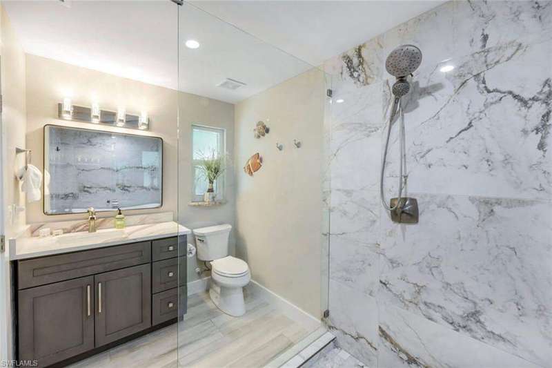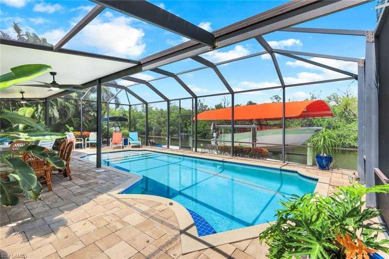 Welcome to this meticulously renovated property, featuring upscale finishes throughout. The open floor plan includes a centralized kitchen with a large quartz waterfall flat island, providing ample seating and space for entertaining. The exceptional outdoor living area overlooks a pristine natural preserve and features a heated saltwater swimming pool, an expansive paver pool deck, and a generously sized covered lanai equipped with dual ceiling fans. This fully renovated home boasts three bedrooms and two full bathrooms, including an owner's suite with a deluxe walk-in shower and a soaking tub room. Additionally, the garage is fitted with a dedicated air conditioning system and custom storage closets, making it ideal for an owner-landlord. PLUS the home has a Solar Voltaic electric system keeping the monthly average at $67. The roof is new in 2023, new AC, new pool heater, new pool automation system, all kitchen & baths, appliances, furniture and finishes. Beautiful condition throughout. This is a must see home for the boating enthusiast.