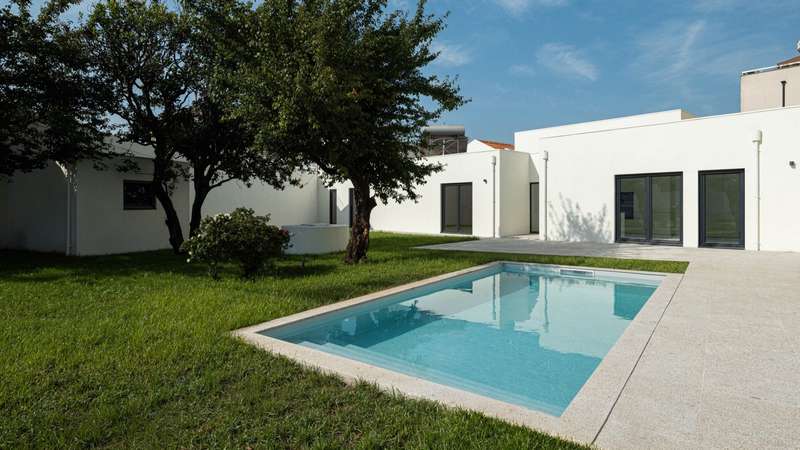 Renovated four-bedroom villa for sale in a residential area of Aldoar, which stands out for its excellent east-west sun exposure, spacious areas and quality finishes. It is mainly on the first floor, where you'll find the social area complemented by a pleasant lawned garden with a heated swimming pool and fruit trees. As far as the private area is concerned, the villa has three suites with direct access to the garden. This property also includes a connected house that will be delivered according to the new owner's personalization, and could be another master suite, an office or a gym, not least because it has an independent entrance. In a prime location, this villa is just a few minutes' walk from Porto City Park and the beach, as well as CLIP and the CUF Hospital. The ideal solution for a family who want to live in a cosmopolitan city with all the tranquillity and quality of life that comes with it. CHARACTERISTICS: Plot Area: 690 m2 | 7 427 sq ft Deployment Area: 244 m2 | 2 626 sq ft Building Area: 334 m2 | 3 595 sq ft Bedrooms: 4 Bathrooms: 6 Garage: 2 Energy efficiency: B- FEATURES: Wooden floors; Daikin air conditioning; Underfloor heating in the bathrooms; Carrara marble in the kitchen and bathrooms; Siemens appliances; Sanitary water heating with solar panels; Schüco double-glazed window frames; Tall doors in thermo-lacquered wood; Well; Lawned garden and fruit trees.