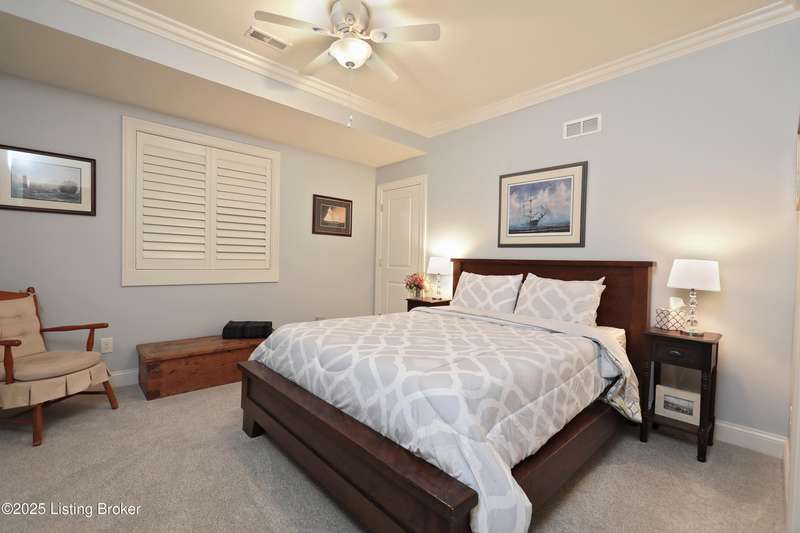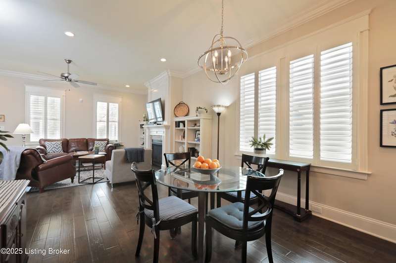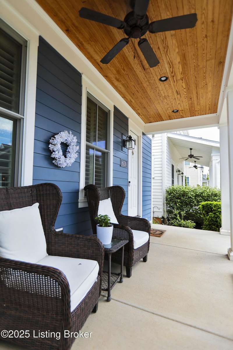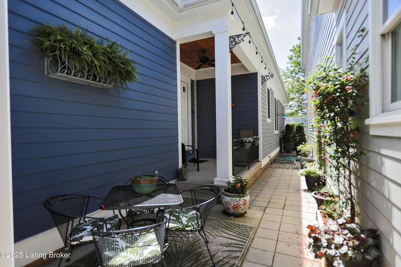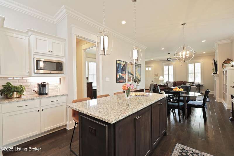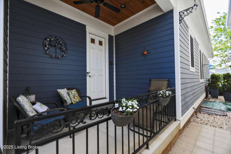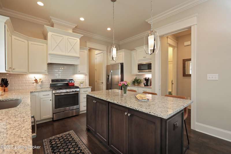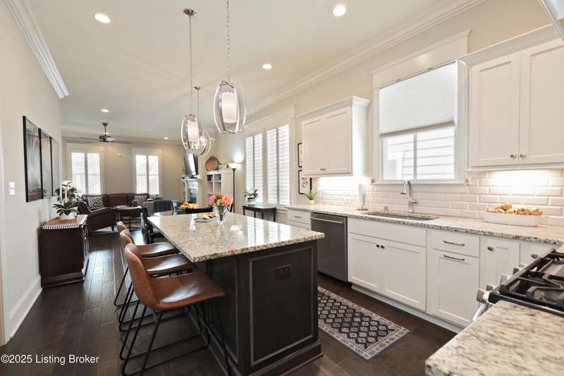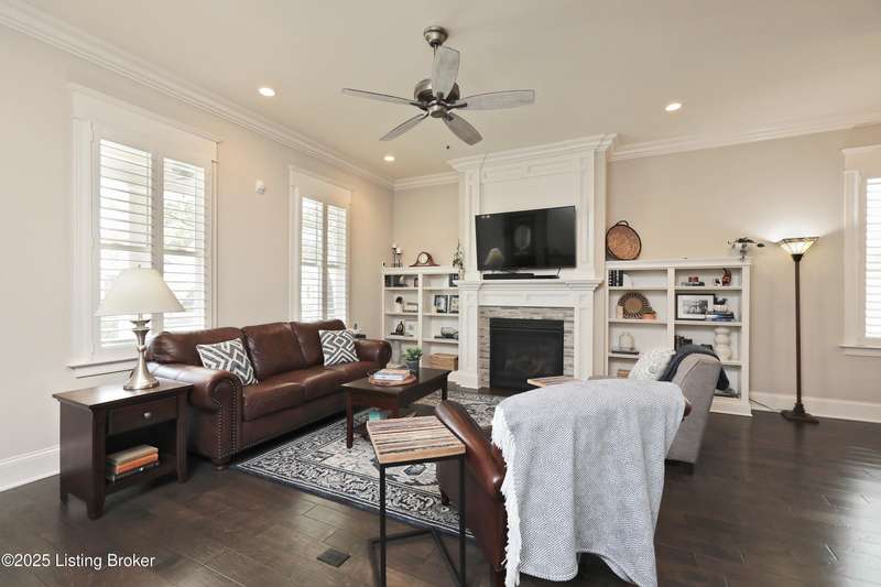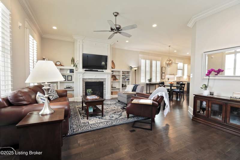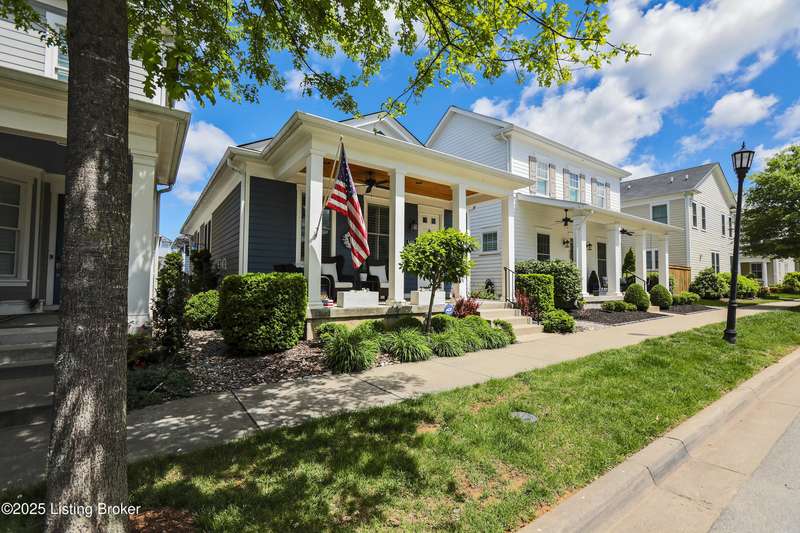 Welcome to a rare gem nestled in the highly sought-after North Village of Norton Commons, where every square foot delivers more lifestyle, more charm, and more convenience. This beautifully designed one-story home offers the ease of main-level living in one of Louisville's most vibrant and walkable communities. From the moment you arrive, the curb appeal and welcoming covered front porch set the tone for relaxed summer evenings spent sipping lemonade and chatting with neighbors. Inside, you're greeted by an open layout that feels both spacious and cozy, highlighted by gleaming hardwood floors and rich millwork throughout. The living room centers around a gas fireplace flanked by custom built-ins--perfect for cozy gatherings--while the adjacent sunny dining area opens seamlessly to a bright kitchen featuring abundant cabinetry, center island, a shelved pantry, a built-in coffee bar/serving station, granite countertops, and timeless subway tile. Plantation shutters grace the windows, adding a touch of elegance throughout. The main-level primary suite is a serene retreat with a spa-like bath showcasing a double vanity with Carrara marble countertops, a walk-in tile shower, and a generous walk-in closet. A second main-level bedroom and nearby full bath offer a perfect setup for guests or a home office. Function meets style at the rear entry where a mudroom area with built-in cubbies and hooks flows effortlessly into a convenient laundry room--both ideally located near the primary suite. Step outside to enjoy even more living space with a covered side porch featuring a beadboard ceiling and a private patio ideal for al fresco dining and container gardening. Downstairs, the expansive finished lower level includes a large family and recreation area, a charming bar nook beneath staircase, and a third ensuite-style bedroom with full egress and a beautiful full bathroom with marble vanity and tiled shower/tub combo--perfect for guests or multigenerational living. There's even additional unfinished space for storage or future expansion. Energy efficiency abounds with a geothermal HVAC system--don't miss the impressively low utility averages. And with Norton Commons' unmatched amenities just steps from your door--including pools, parks, shops, restaurants, schools, a YMCA, and amphitheater--you'll enjoy a true "lock-and-leave" lifestyle with everything you need within reach. This is more than just a home--it's a community, a lifestyle, and a rare opportunity. Come see why this North Village beauty is exactly what you've been waiting for!