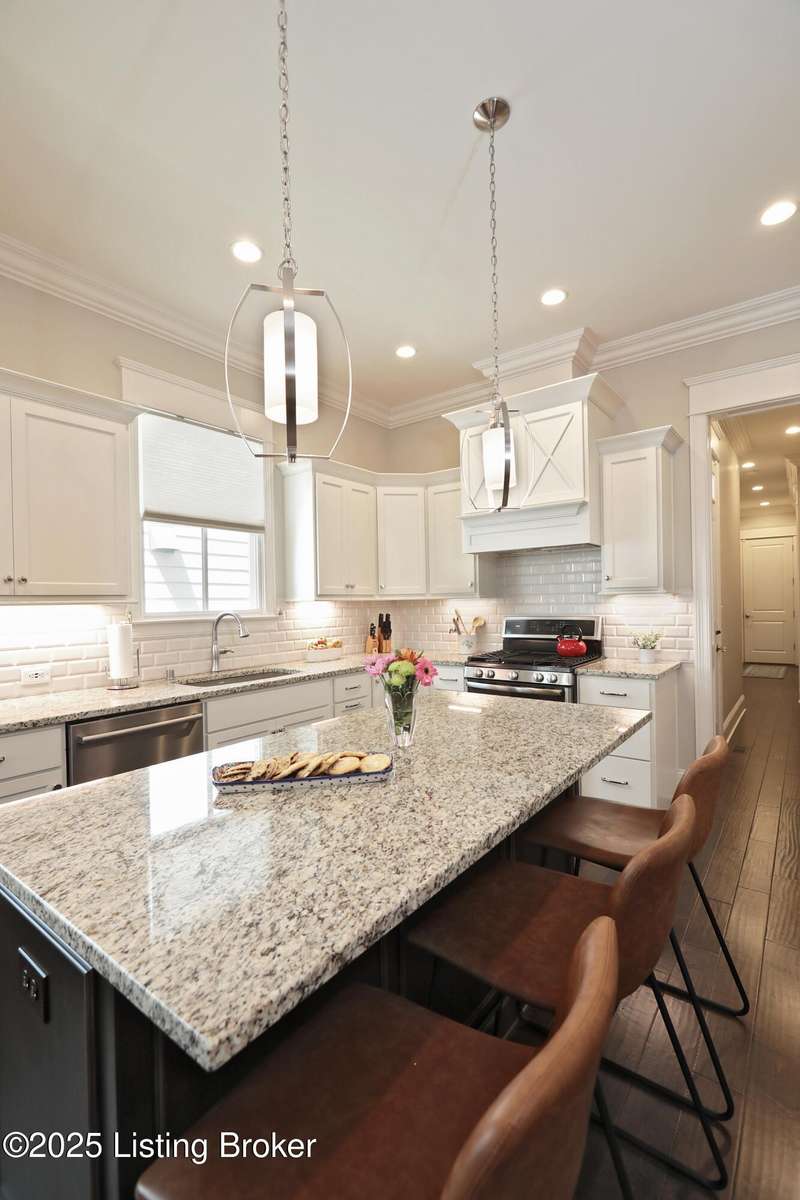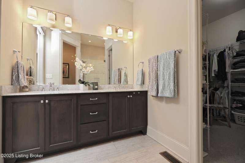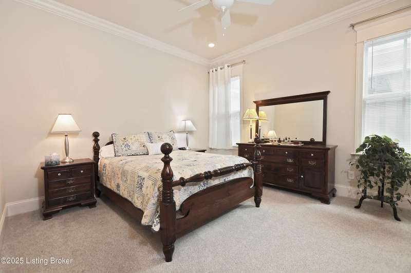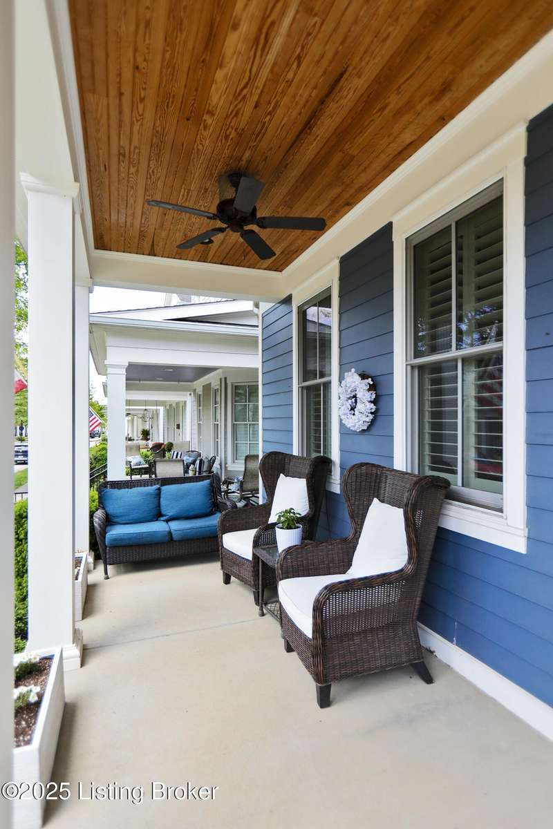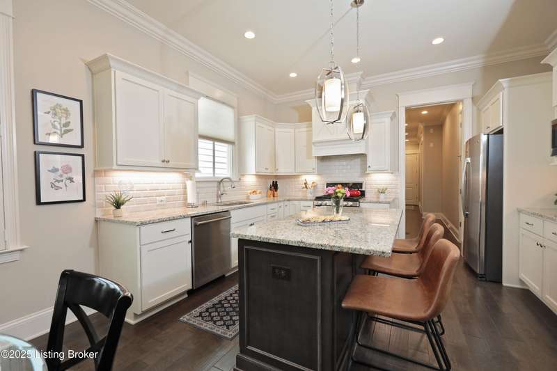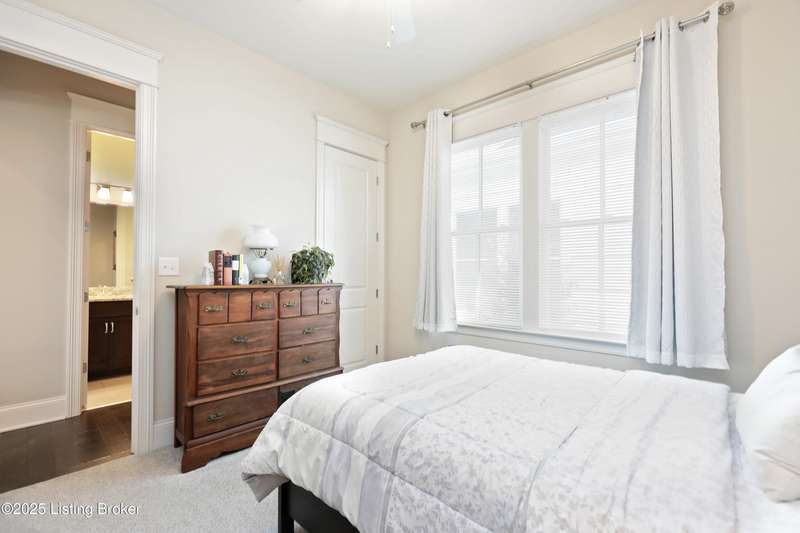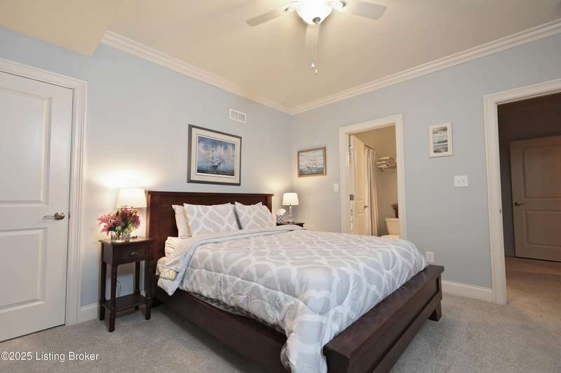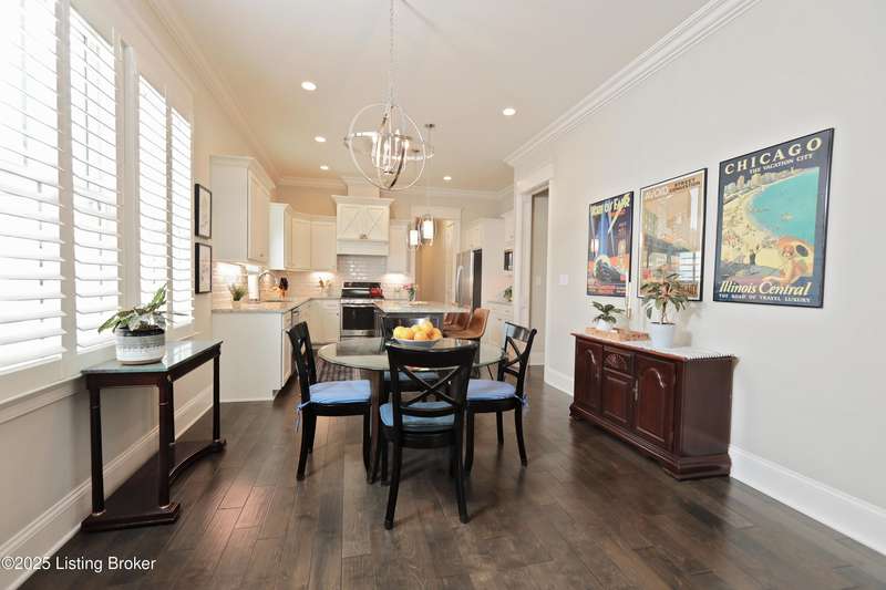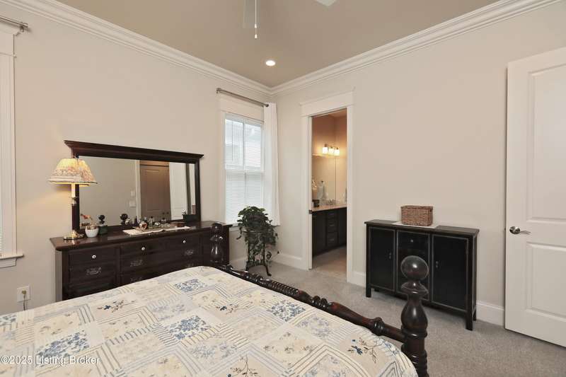 Welcome to a rare gem nestled in the highly sought-after North Village of Norton Commons, where every square foot delivers more lifestyle, more charm, and more convenience. This beautifully designed one-story home offers the ease of main-level living in one of Louisville's most vibrant and walkable communities. From the moment you arrive, the curb appeal and welcoming covered front porch set the tone for relaxed summer evenings spent sipping lemonade and chatting with neighbors. Inside, you're greeted by an open layout that feels both spacious and cozy, highlighted by gleaming hardwood floors and rich millwork throughout. The living room centers around a gas fireplace flanked by custom built-ins--perfect for cozy gatherings--while the adjacent sunny dining area opens seamlessly to a bright kitchen featuring abundant cabinetry, center island, a shelved pantry, a built-in coffee bar/serving station, granite countertops, and timeless subway tile. Plantation shutters grace the windows, adding a touch of elegance throughout. The main-level primary suite is a serene retreat with a spa-like bath showcasing a double vanity with Carrara marble countertops, a walk-in tile shower, and a generous walk-in closet. A second main-level bedroom and nearby full bath offer a perfect setup for guests or a home office. Function meets style at the rear entry where a mudroom area with built-in cubbies and hooks flows effortlessly into a convenient laundry room--both ideally located near the primary suite. Step outside to enjoy even more living space with a covered side porch featuring a beadboard ceiling and a private patio ideal for al fresco dining and container gardening. Downstairs, the expansive finished lower level includes a large family and recreation area, a charming bar nook beneath staircase, and a third ensuite-style bedroom with full egress and a beautiful full bathroom with marble vanity and tiled shower/tub combo--perfect for guests or multigenerational living. There's even additional unfinished space for storage or future expansion. Energy efficiency abounds with a geothermal HVAC system--don't miss the impressively low utility averages. And with Norton Commons' unmatched amenities just steps from your door--including pools, parks, shops, restaurants, schools, a YMCA, and amphitheater--you'll enjoy a true "lock-and-leave" lifestyle with everything you need within reach. This is more than just a home--it's a community, a lifestyle, and a rare opportunity. Come see why this North Village beauty is exactly what you've been waiting for!