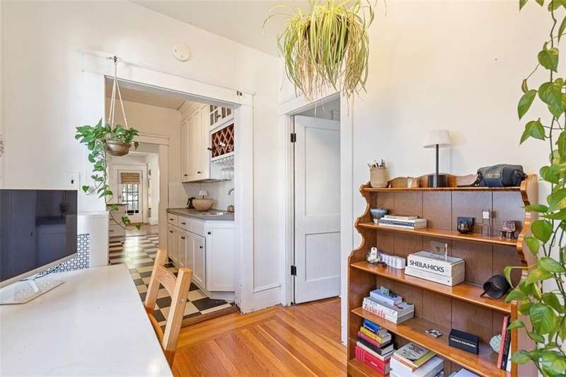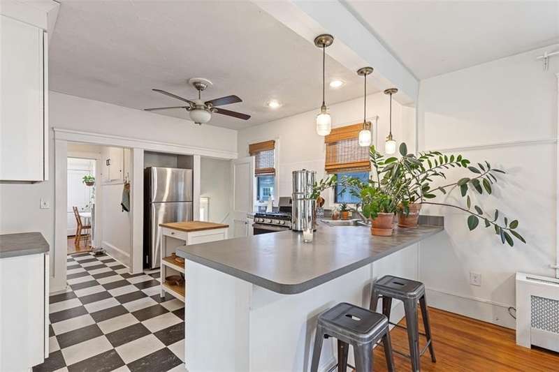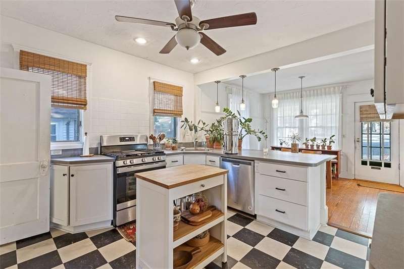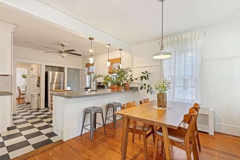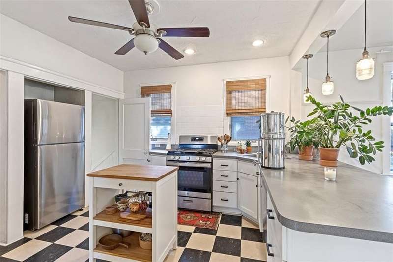 Asking for Highest and Best Offers by Monday, Nov 3rd @12pm. Charming bungalow right in the heart of Elmhurst bursting with character at every turn. Featuring a wonderful front porch with unique railing detail and a fully fenced in yard with a sweet brick patio. Inside this 2 bed 1 bath home, you'll feel invited into a comfortable floor plan flow with beautiful wood windows and plentiful natural light. Built in shelves to feature your books and decorations. The kitchen is snazzy and spacious with a 4 seater breakfast counter and newer checkered floors. Appliances feature gas cooking, a dishwasher and a stainless steel finish. Updated pendant lights in the kitchen and dining make for a cozy and welcoming environment. Storage is plentiful with the bonus wet bar sink and added storage cabinets and built in wine rack. Need office space? The rear of the home features a bonus area that can perfectly fit a desk. The basement is partially finished with newer vinyl flooring for that extra boost of square footage. Don't wait to see how much value this cozy abode has to offer.