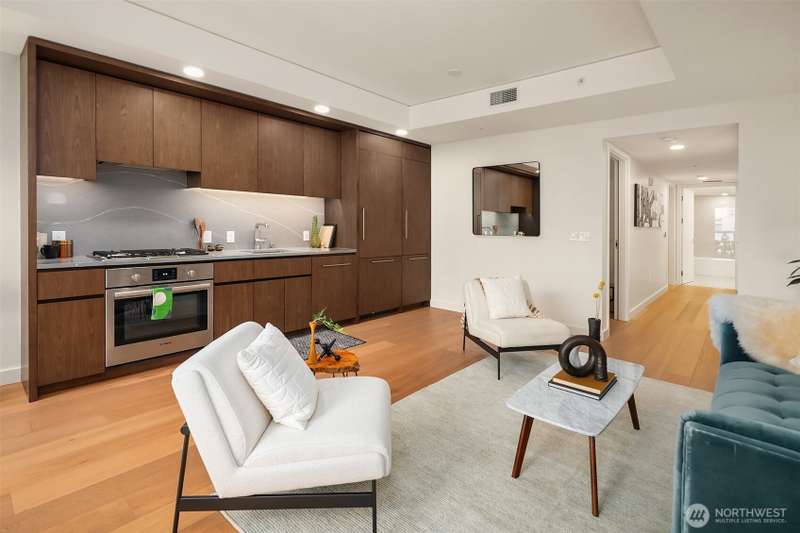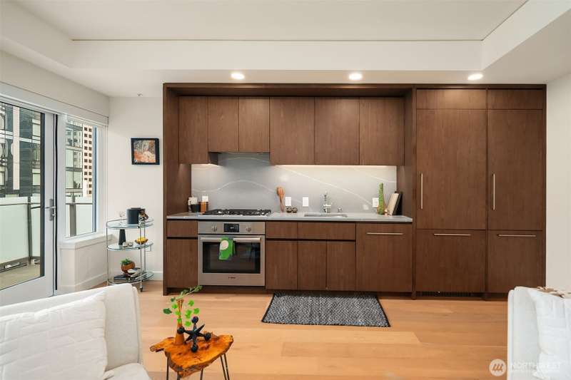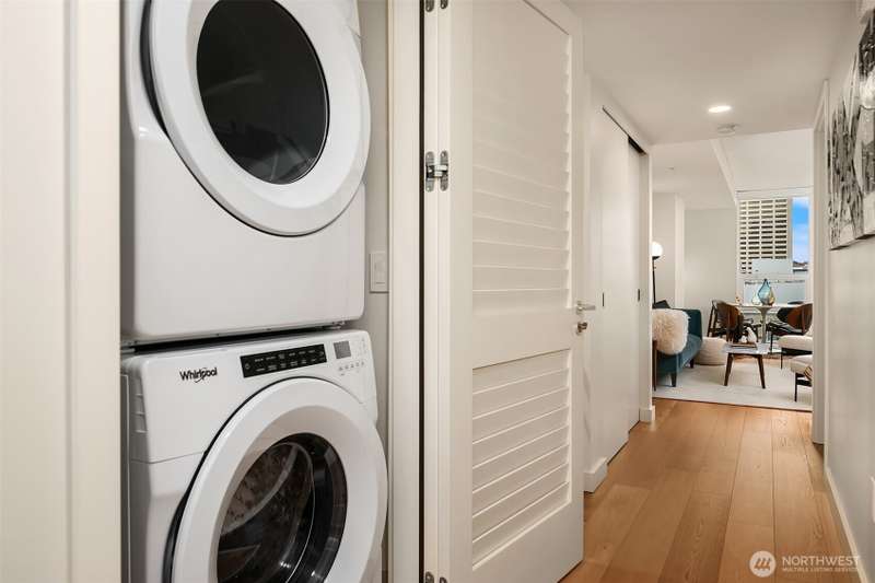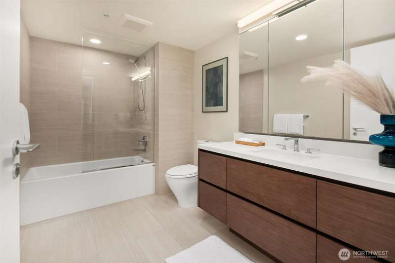 New Price +$2,400 Parking Buyer Credit! Sophisticated City Living with Private Terrace at The Emerald. Perched above the city with dynamic views of downtown this stunning home at offers a rare blend of indoor-outdoor living and sophisticated design. Featuring two enclosed bedrooms, floor-to-ceiling windows, custom wood cabinetry, hardwood floors, full-size washer/dryer, and Latch keyless entry, this residence delivers elevated urban living at its finest. Just blocks from Pike Place Market & Seattle’s waterfront. Enjoy resort-style amenities, including a state-of-the-art fitness center, yoga studio, pet run and spa, guest suite, and a full-floor rooftop lounge with indoor and outdoor gathering spaces—offering protected views of Elliott Bay.