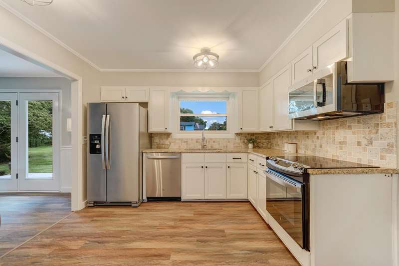 Timeless design meets modern refinement in this like new 3 bed, 2 bath residence. Inspired by the iconic lines of Frank Lloyd Wright, the mid-century exterior is complimented by a thoughtfully reimagined interior, blending architectural character with contemporary comfort. Inside, new LVP flooring, 2 beautifully updated full baths, spacious primary with walk in closet and carefully selected fixtures create an atmosphere of comfortable elegance. The dining room features lovely built-in cabinetry, offering both sophistication and practical storage. A whole house generator provides security and comfort.Designed for versatility, the home offers both a gracious living room and an inviting den with a gas log fireplace?ideal for gatherings, quiet evenings, or simply enjoying the comfort of separate living spaces. A brand-new stackable washer and dryer is a fantastic addition. Every detail has been curated to enhance both form and function.Outdoors, the impeccably maintained lawn and expansive two-car carport with upfront storage reflect the same care and attention found throughout the home. The patio provides the perfect spot for relaxing mornings or fun evenings entertaining.Nestled within the Western Alamance school district, this residence and its offerings is a not to be missed opportunity.