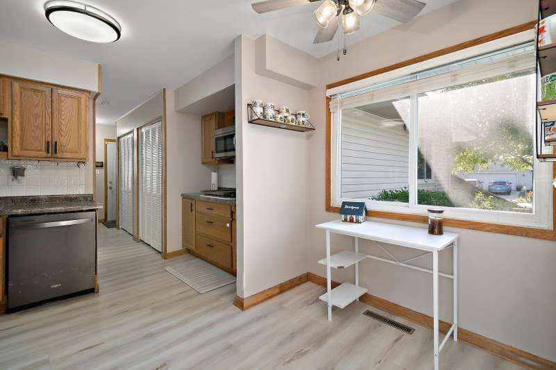 Welcome to this spacious and inviting ranch home offering 3 bedrooms, 2 full bathrooms plus an additional walk-in shower, all within 1,670 square feet of living space. Situated on a crawl, this home features a two-car garage and a fenced backyard complete with a hot tub, patio, and shed-perfect for relaxation and entertaining. Step inside to find beautiful hardwood floors that flow from the entry through the living and dining areas. The galley-style kitchen is both functional and charming, with newer flooring, a gas cooktop, newer microwave and refrigerator, and a bright nook ideal for a breakfast table or cozy reading corner. A nearby pantry and ample storage closets provide great organization options. The family room/den with double doors has been thoughtfully adapted for handicapped accessibility, currently serving as a bedroom with its own walk-in shower. All three bedrooms feature new flooring, and the recently rehabbed second bathroom boasts a tiled shower for a fresh, modern feel. Adding to the peace of mind, the roof and gutters were replaced in 2025. With its flexible layout, modern updates, and fantastic outdoor amenities, this Bourbonnais home offers comfort, convenience, and plenty of space to make it your own. Let's set a tour!