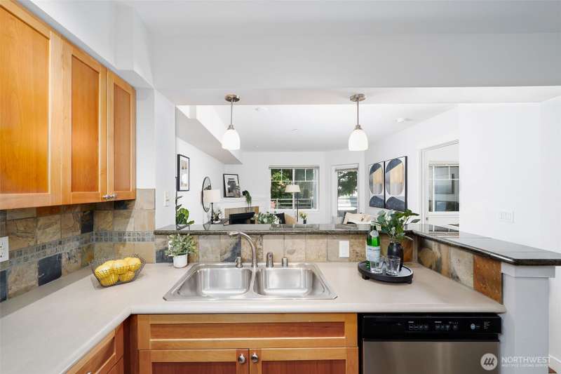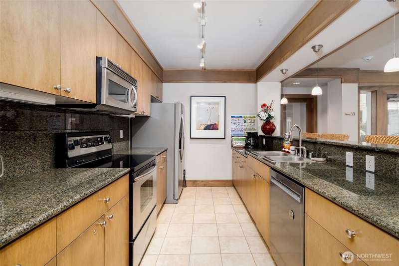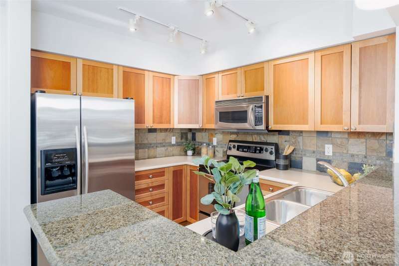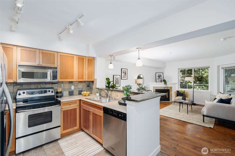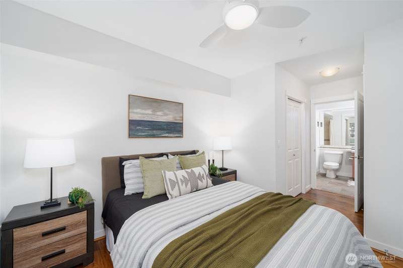 Welcome to the best of Ballard living in this beautifully maintained 2nd floor, 1 bedroom condo! This west-facing unit is filled with natural light and features elegant hardwood floors, stone tile accents, that compliment the freshly painted and a spacious, open layout, perfect for relaxing or hosting a soiree. In unit laundry and parking space in secure garage. Ballard Place is a well-managed building, with full time concierge service. Great amenities include; Jacuzzi's, gym, sauna, entertaining lounge, and rooftop deck, where pea-patch planters are available. With convenient access to Ballard’s shops, restaurants, parks, and public transit.
