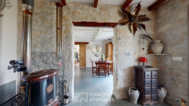The high-quality materials lend charm and quality to the property: exotic wood floors in the bedrooms and living room, Italian tiled floors in the living areas. The interior doors, also custom-made, demonstrate constant attention to detail. Comfort is ensured by ceramic inertia electric heating complemented by two wood-burning stoves.