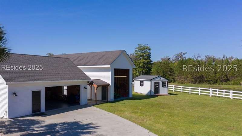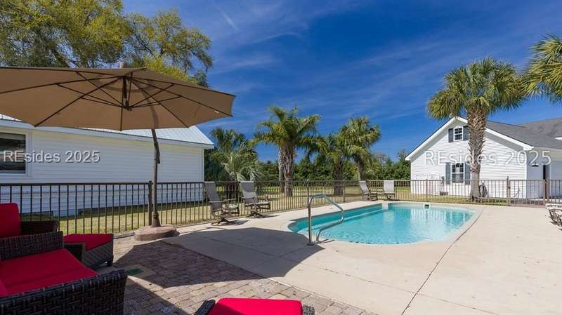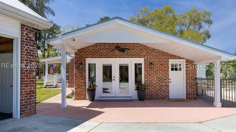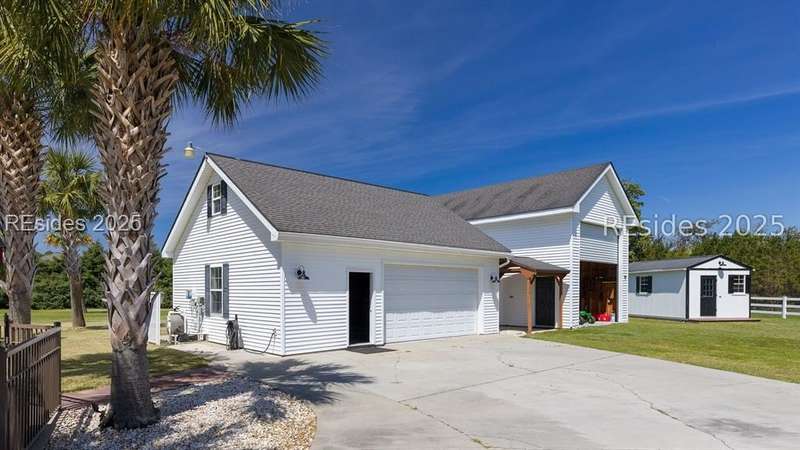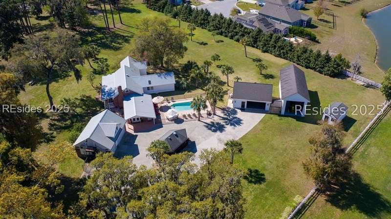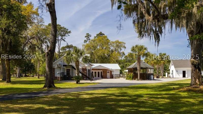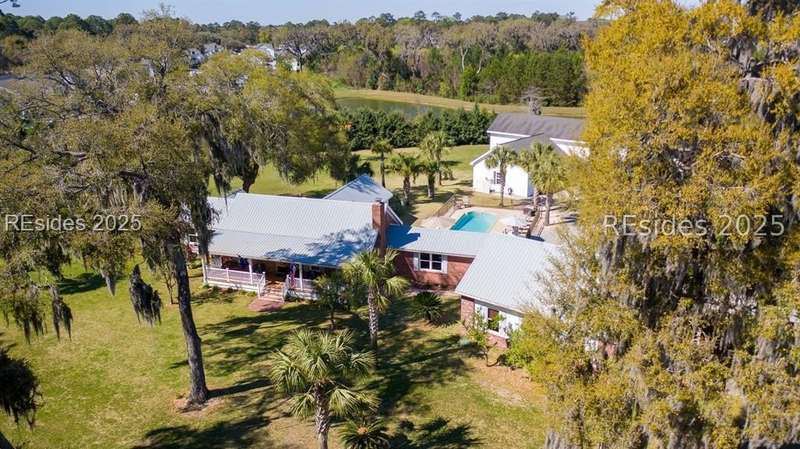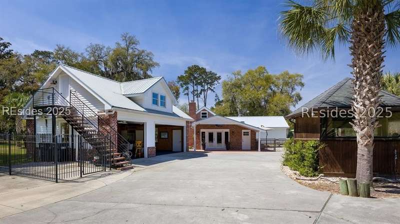 Over 5 acres NO HOA!. Welcome to your own private Lowcountry retreat. Meticulously maintained estate surrounded by century-old live oaks. This gorgeous property is designed for unforgettable gatherings and making memories. Including an in-ground saltwater pool and cabana bar. Recently renovated; bedrooms, bathrooms, laundry room, new flooring, paint, etc. One garage has been transformed into the ultimate game/flex room with a 325 sq ft guest apt upstairs. RV/boat storage for all your recreational needs. Located minutes from Downtown Beaufort, Bluffton, boat launches, and popular dining spots. This gem offers both privacy and convenience. This Listing includes 2 parcels.
