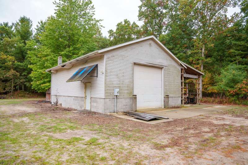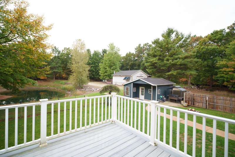 Secluded Wooded Retreat with Pond and Pole Barn - Reeths-Puffer Schools! Tucked away on 5 peaceful, wooded acres, this beautifully maintained 3-bedroom, possibly 4th bedroom in the lower level, 2.5-bath home offers the perfect blend of comfort and tranquility within the Reeths-Puffer School District. Enjoy a spacious layout with a large primary suite, walk-in closet, private bath, low-maintenance flooring, and both a cozy fireplace and pellet stove for those crisp Michigan evenings. Outside, relax listening to the soothing rock waterfall, or spend the day fishing in the stocked pond. The impressive 30x40 pole barn features a 12' overhead door, 14' ceilings, and a 14x40 lean-to for extra storage. A heated outbuilding makes an ideal office or hobby space and also has a green house area, plus there's an additional storage shed. Just minutes from Muskegon State Park and Lake Michigan, this peaceful retreat offers the perfect balance of privacy, recreation, and convenience.