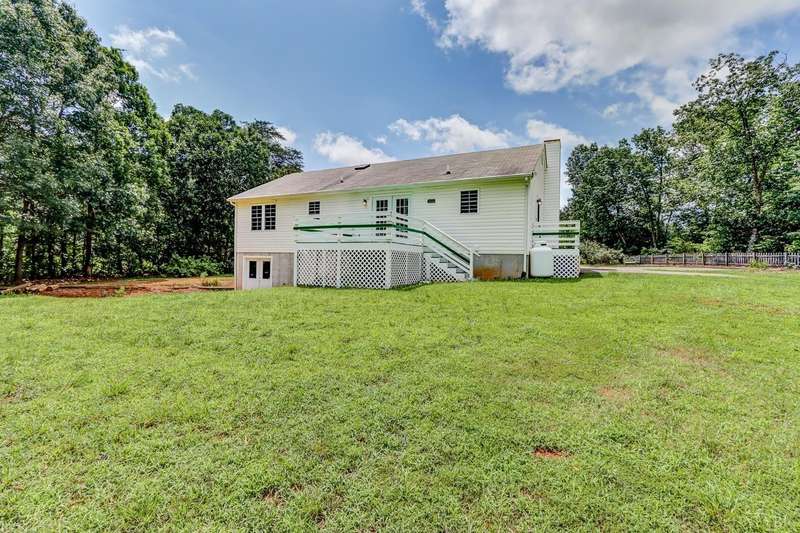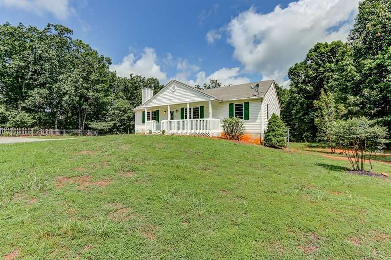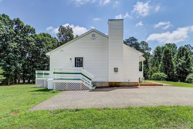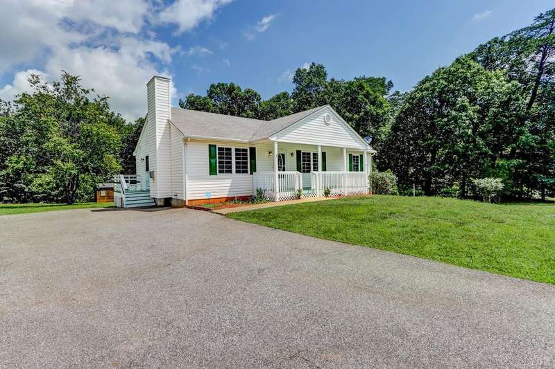 Main Level Living: Beautiful Ranch Home, private setting on 1.06-acre cul-de-sac lot, conveniently located 1 mile from downtown Appomattox, VA. Main floor master with full ensuite bath and walk-in closet. 2 additional bedrooms and a full bath/skylight. Large kitchen with island and lots of cabinet/drawer space. Large dining area with french insulated doors that open to a 12'x12' deck with stairs down to the yard. all rooms upstairs have ceiling fan and have been freshly painte, new carpet in bedrooms and all new window blinds. Downstairs is cooled/heated, framed and partially finished with walk-out basement. Covered rocking chair style front porch, side porch and a deck are all in great condition and freshly painted. Home has a Security Alarm system and all new Smoke Detectors. There is a paved driveway and two storage buildings in backyard. This home is very nice and is in move in condition!!