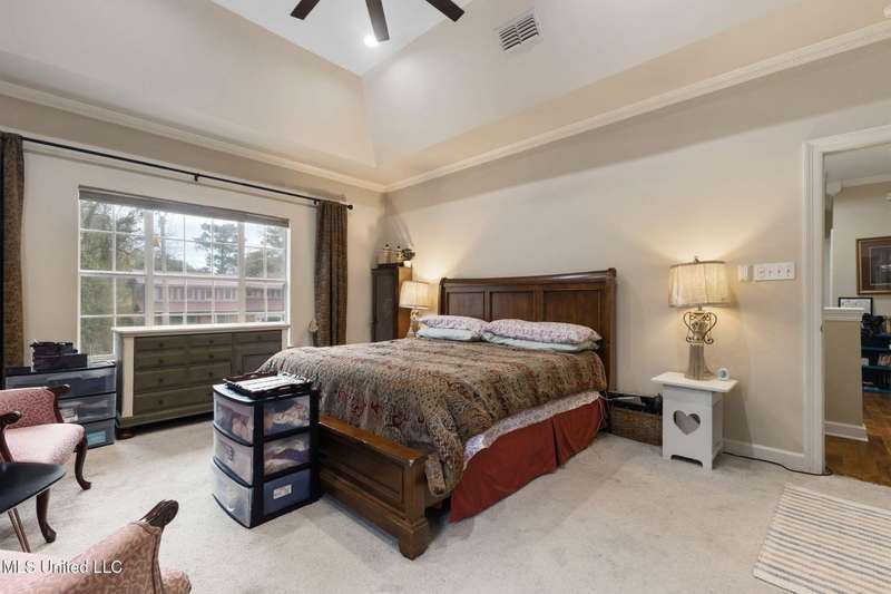Discover this beautiful 4 bedroom, 3.5 bath home on a corner lot, ideally situated across from a picturesque golf course. The property boasts a circular driveway that welcomes you, along with a side driveway leading to a two-car garage, providing ample parking for you and your guests. Step inside and find an inviting, spacious atmosphere and soaring ceilings. The primary suite is a true retreat, complete with a cozy fireplace and expansive en-suite bath. The second large bedroom includes its own private bath. As a resident, you will enjoy access to a wealth of community amenities, including a golf course, swimming pool, tennis courts, and walking trails. Whether you are looking to stay active or simply unwind in a serene environment, this community has it all.