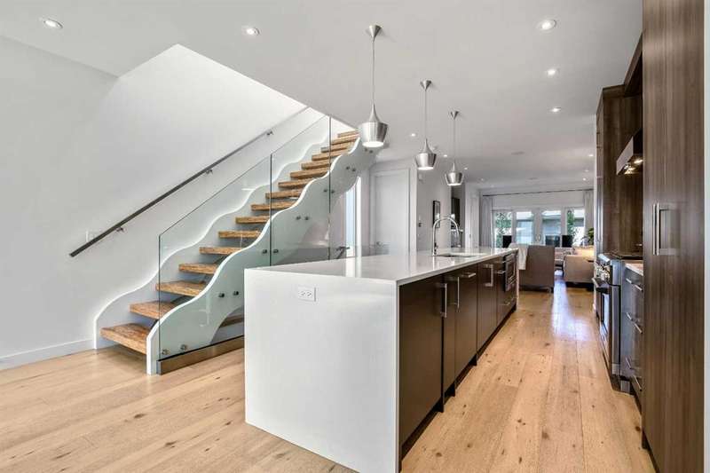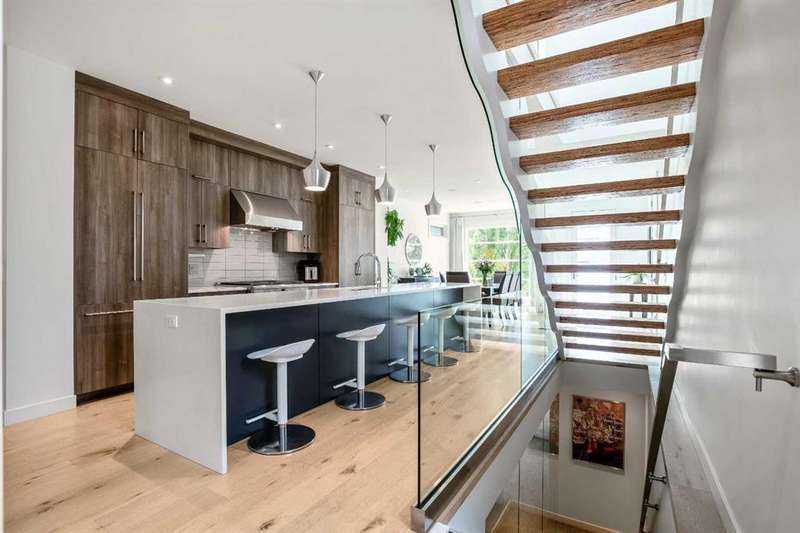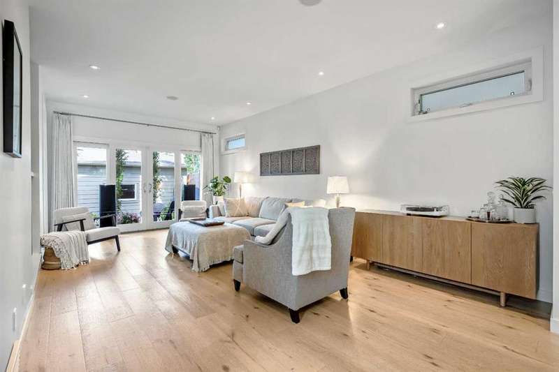Welcome to 2136 53 Ave SW! This crisp and modern home is located in the quiet neighbourhood of North Glenmore Park. High quality materials, finishing and workmanship are evident in this home with an open plan concept and design. The main floor offers an open layout that is flooded with natural light throughout the day. The custom kitchen features a 13ft white quartz waterfall eating bar, a 6 burner dual fuel GE Monogram oven, a built in microwave, panelled Bosch Fridge, panelled Bar fridge and Bosch dishwasher. Lots of room to entertain a large group with the open flow. The custom wavy paralam open riser staircase is a unique and classy feature with the sophisticated stainless steel and glass railings adding a airness to the space The living room offers a modern gas fireplace, double patio doors, a mud room with a custom bench all leading to the low maintenance backyard, private deck and double detached garage. The upper floor features even more natural light with skylights, large windows, vaulted ceilings throughout, a large primary bedroom with custom built in's, a luxurious ensuite with heated tile floors, dual sinks, soaker tub, separate tiled shower, a generous custom walk in closet, truly a gorgeous place to relax at the end of the day. Two additional bedrooms, main bathroom with heated tiled floors and the upstairs laundry complete with a sink complete this level. The basement is fully developed with a large recreation room to entertain friends and family with a wet bar with fridge or have your personal gym at home. The large 4th bedroom and full bathroom is perfect for guest to be comfortable complete this level. Top this off with RI in floor heating, the double detached garage that is insulated & drywalled. The backyard is a tranquil peaceful low maintenance space to relax in, while the front landscaping is lush and welcoming with multiple established perennials, shrubs and trees. Come move in and put your feet up. Enjoy the quiet simple life with conveniences at your fingertips. Enjoy being able to walk to; The Glenmore Aquatic Center, the old and new Glenmore Athletic Park, River Park/Dog Park, Sandy Beach Park, Stu Peppard,(New Twin Areas Coming soon) Flames Community Arenas and Curling Club, Calgary Tennis Center, Lakeview Golf course, Bike downtown or to the Glenmore Reservoir with the Elbow River pathway, Highschool, or even Mount Royal University and great transit including the Max bus line. Easy access to Downtown, Crowchild, Glenmore and Stoney Trail.