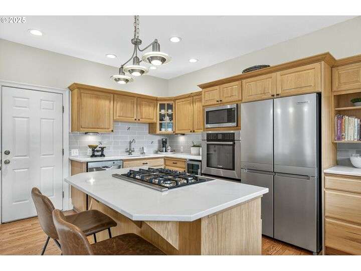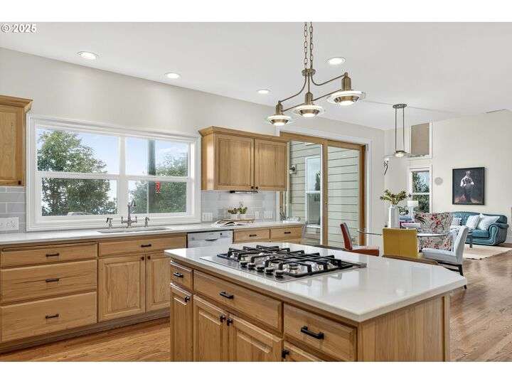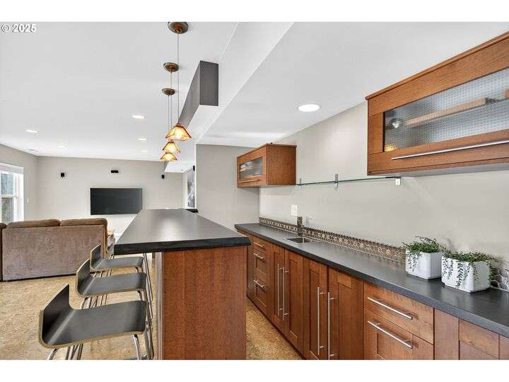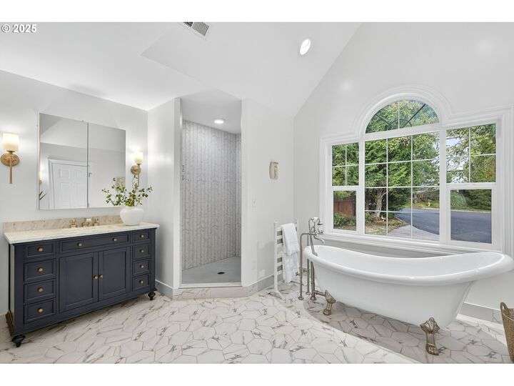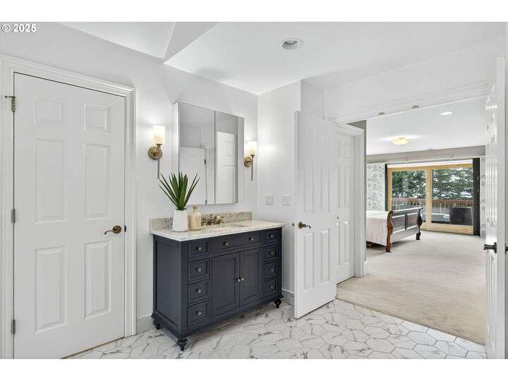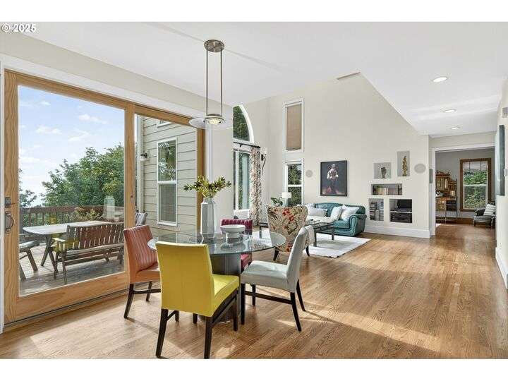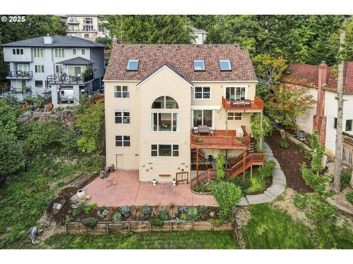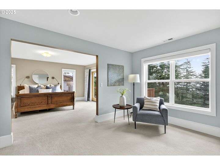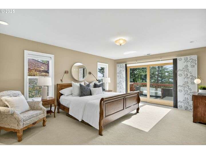Tucked into a serene setting with tranquil views, this expansive home is a rare find. Traditional in its design yet infused with European charm, it balances warm character with modern function. The gorgeous hardwood floors flow through the main level, where soaring ceilings are bright and filled with light, an open-concept kitchen, and a casual dining area connect seamlessly with more classic spaces like the formal dining room; perfect for hosting or everyday living. The extra large primary suite feels like its own retreat, featuring a spa-like bath and a private balcony ideal for morning coffee or evening unwinding. There is even a lovely sitting room just off the foot of your bed, so reading and contemplation are a dream. The upper level is full of surprises: two additional bedrooms plus flexible areas that could serve as a home gym, office, or play space. Downstairs, the lower level offers an exterior entrance and endless potential for separate living quarters or recreation—ideal for multi-generational living, guests, or private office space. This level has a wet bar, rec room, tv room, 2 offices and a storage or music room. You’ll love the cork floors! The property is spacious, open and ready for you to create your own personal resort; room for play, a pool or sport court and more. With multiple bedrooms, versatile living areas, and a tranquil outdoor backdrop, this home offers room to grow, entertain, and truly live. Unlike anything else in Forest Heights, it’s a perfect blend of charm, function, and setting with excellent proximity to the French American School, Downtown, Forest Park Elementary and Lincoln high school. [Home Energy Score = 1. HES Report at https://rpt.greenbuildingregistry.com/hes/OR10241479]