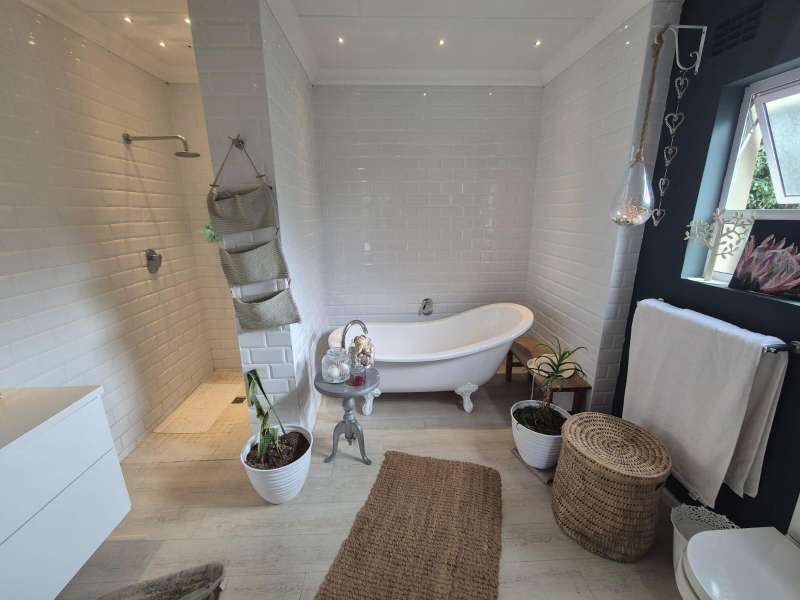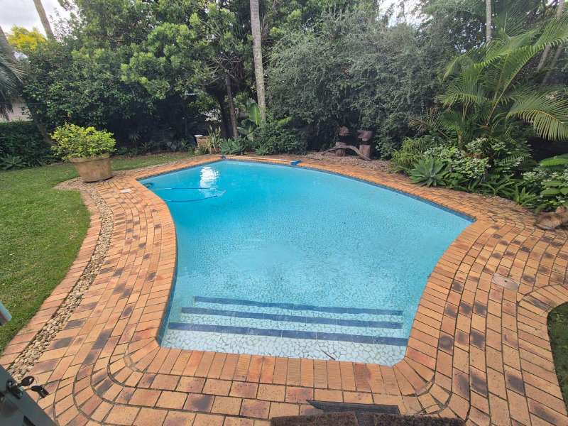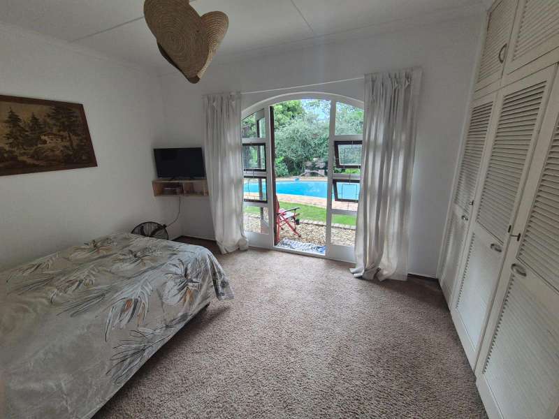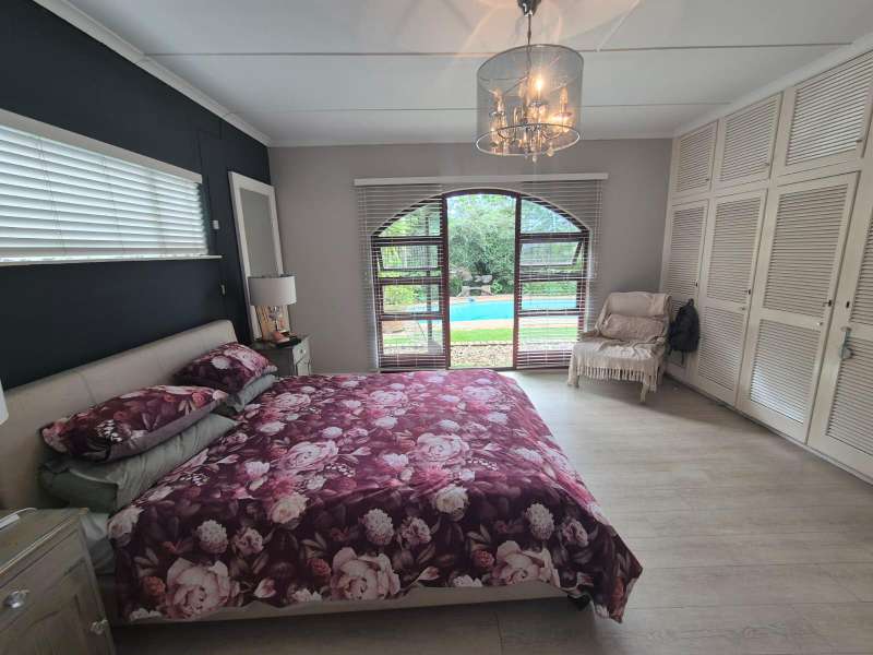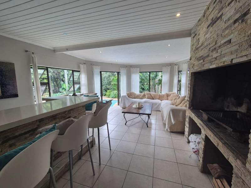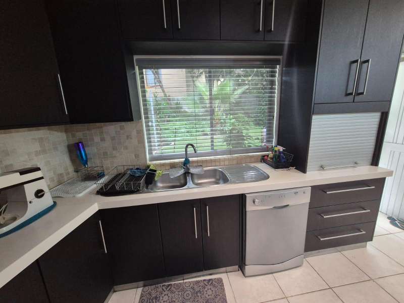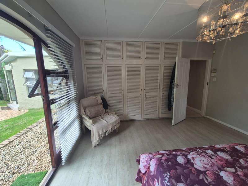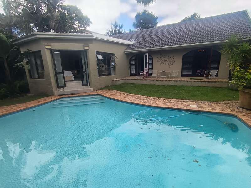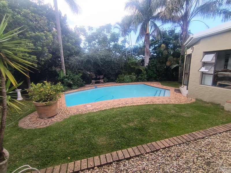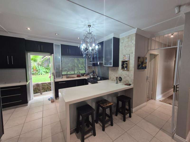 Presenting this rare layout double story 4-bedroom home in Nahoon Valley. Downstairs - The heart of the home is the stylish open plan kitchen, complete with granite countertops, seamlessly flowing into a spacious dining area and an entertainment lounge consisting of a built-in bar and large built in braai. The lounge leads elegantly to the outside pool area. 3 large bedrooms, all with built-in-cupboards and their own unique chandelier. The main bedroom has a picturesque magazine type en-suite. The main bedroom leads to the outside pool area. There is a main bathroom with separate toilet. Upstairs consists of a kitchenette, lounge area, separate bedroom and en suite bathroom with a shower. This space is perfect for extended family members, teens or to utilize as a flatlet for extra income. At the back there is a separate flatlet with a kitchenette, separate bedroom with built-in-cupboards and an en-suite bathroom. Equipped with its own outside deck. There is a double garage, 1 gated parking and 2 off street parkings available. There is a lovely spacious yard with a built-in round braai.