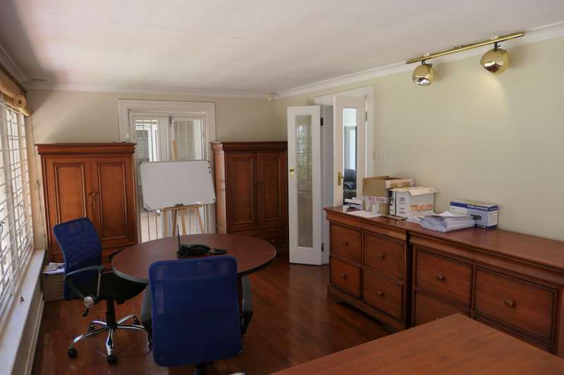 Welcome to this stunning upmarket property located in the heart of Pretoria. This luxurious home is spread over three levels and boasts breath-taking views of the city, with the perfect address. The property is light and bright with large windows and very good security. Previously occupied by various embassies. As you enter the property, you are greeted by a grand formal lounge adjacent to an elegant guest en-suite bedroom. The second level of the property features another formal lounge, a study with a bathroom, a pajama lounge, a dining room, and a fully-equipped kitchen. The dining room opens onto two marvellous entertainment areas, perfect for outdoor entertaining. Included is a built-in braai area and a built-in pizza oven. The back garden hosts the perfect size sparkling swimming pool for those hot summer days. On the third level, you will find four spacious bedrooms, each with its own unique charm. The main bedroom boasts a lavish en-suite bathroom, while the second bedroom also features an en-suite bathroom. The remaining two bedrooms share a well-appointed bathroom. This property also boasts a large laundry room, 2 in-house storage rooms as well as a large 2 bedroom, kitchenette with bathroom servants quarters. This property has been uniquely designed and is move-in ready. The finishes are of the highest quality, and the entire property exudes sophistication and elegance. With its prime location, stunning views, and luxurious features, this property is the epitome of luxury living in Pretoria