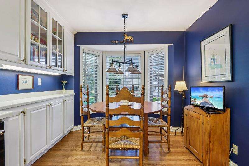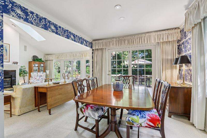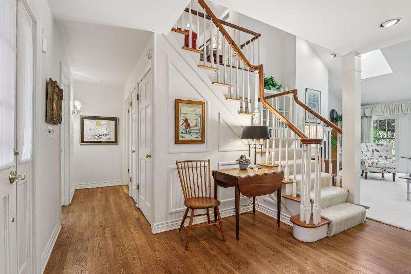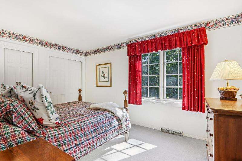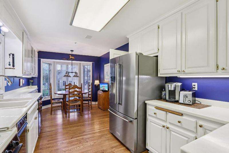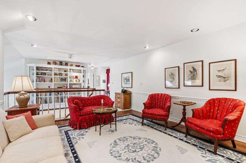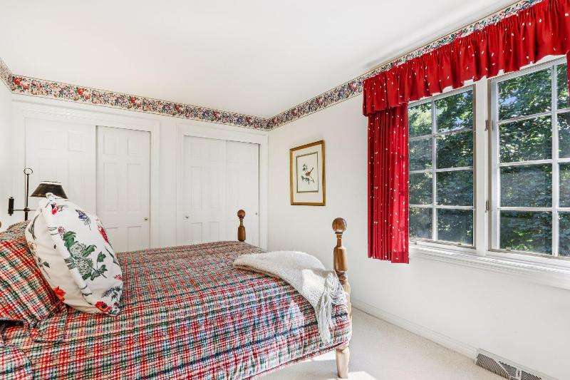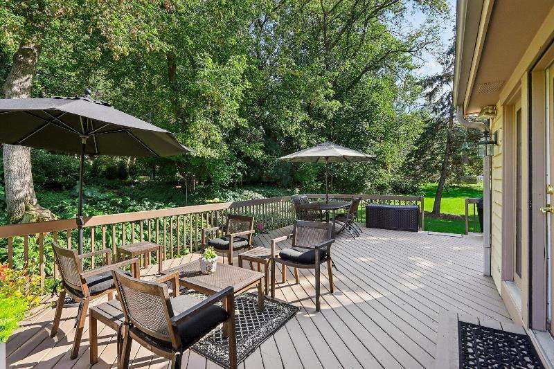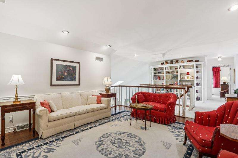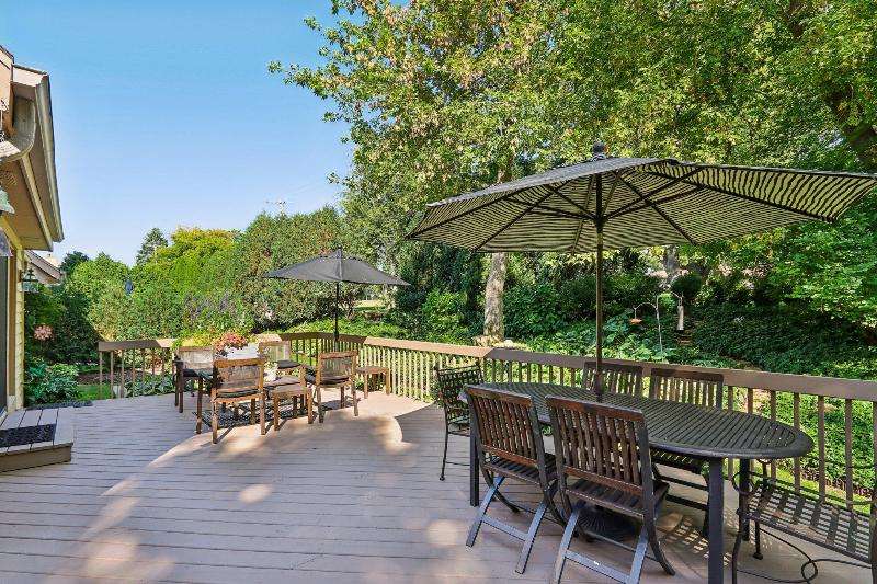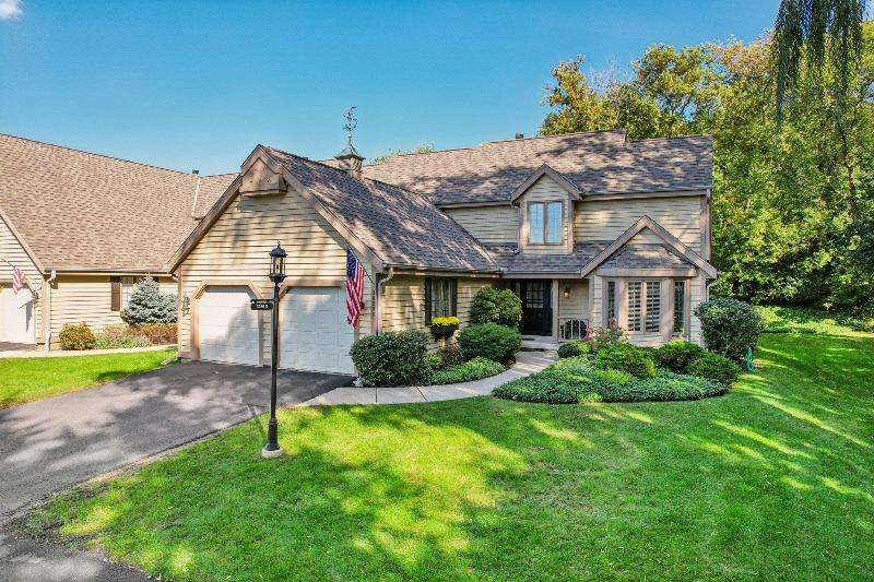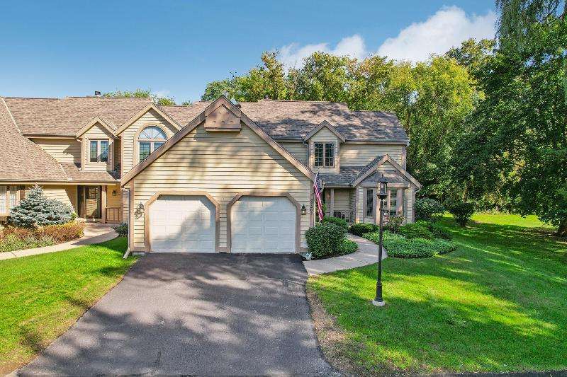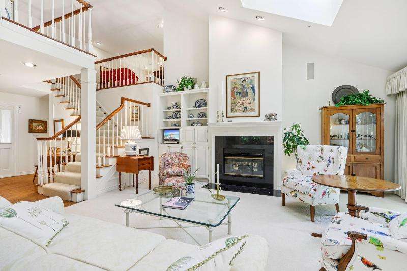 Prime condo location tucked at the back of the association on a quiet cul-de-sac, surrounded by gardens and green lawns. This traditional townhouse offers sunny east and south exposures that fill every room with light. Enjoy treetop and garden views from all windows and relax on the oversized newer deck overlooking private landscaping. A custom floor plan features a level living to dining room with built-ins, wet bar, gas fireplace, perfect for entertaining. The bright white kitchen has Corian counters, wood floors, and a dinette. Upstairs, a lofted library with pull-out couch adjoins the second bedroom and bath. Lower level provides ample storage and expansion potential. Stylish, comfortable, and quietly set in nature's beauty.