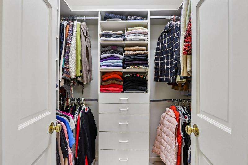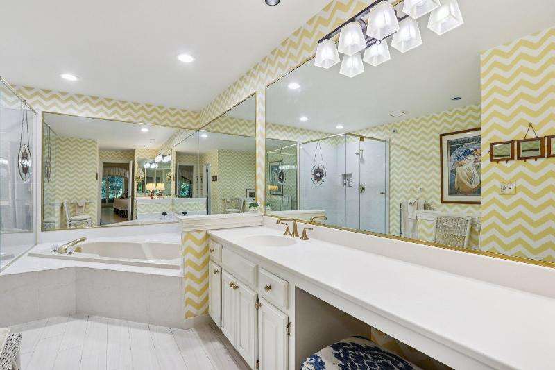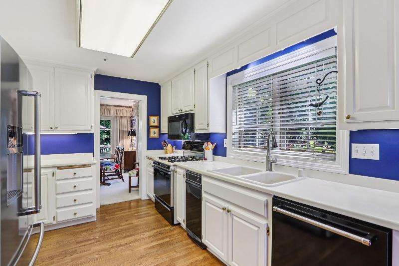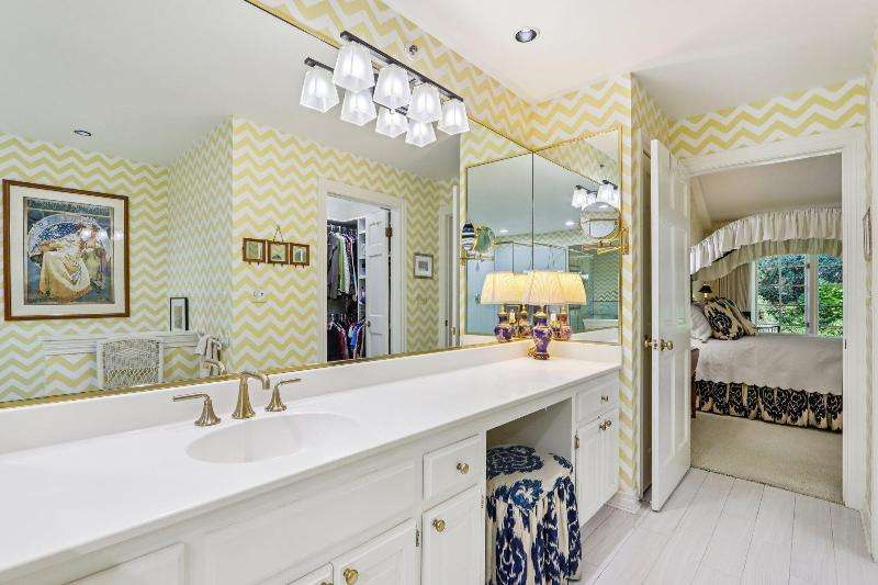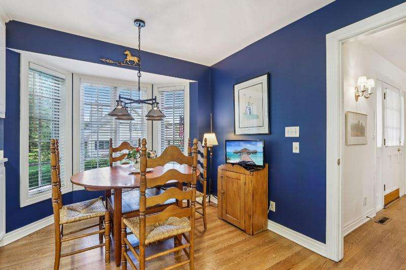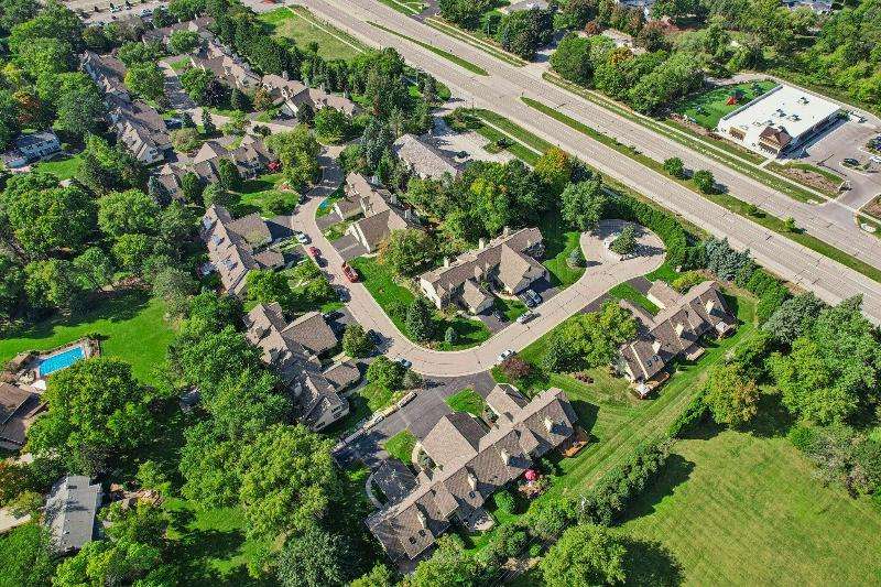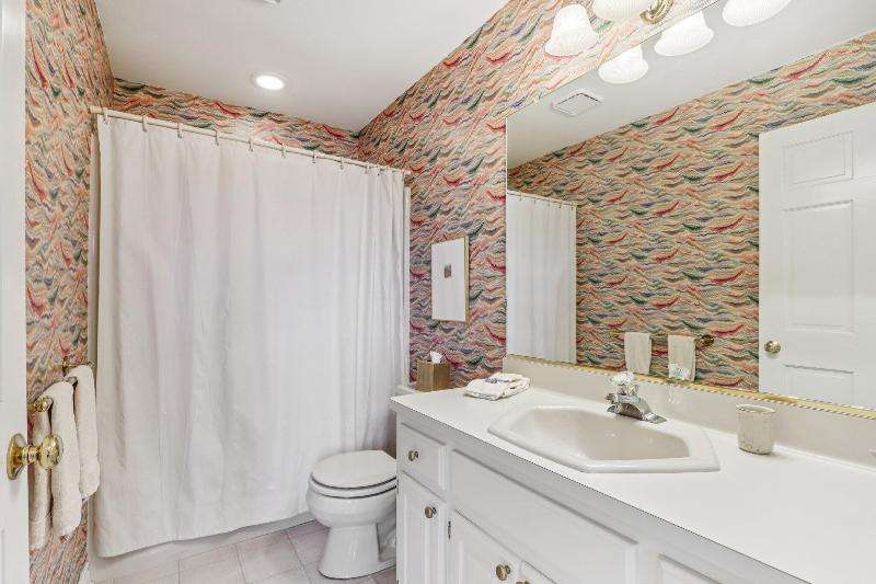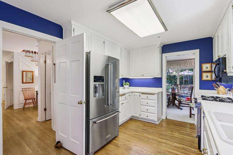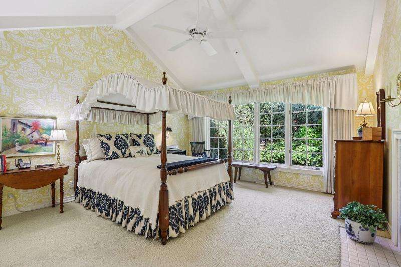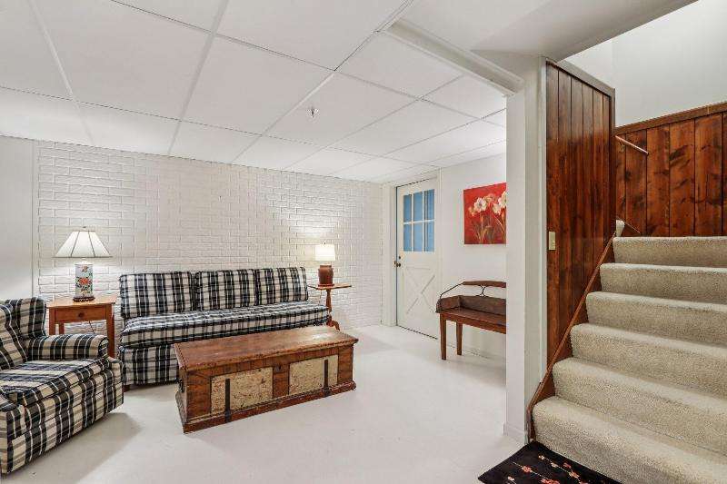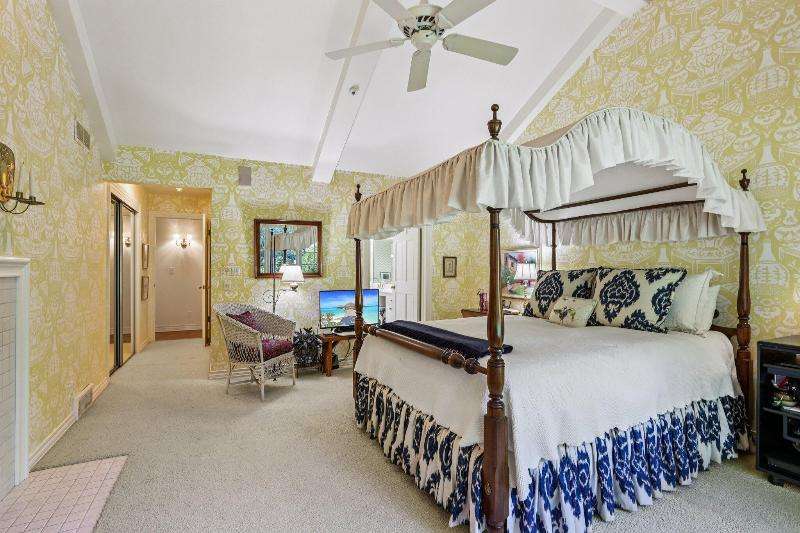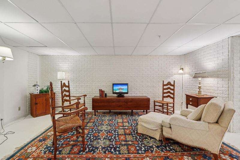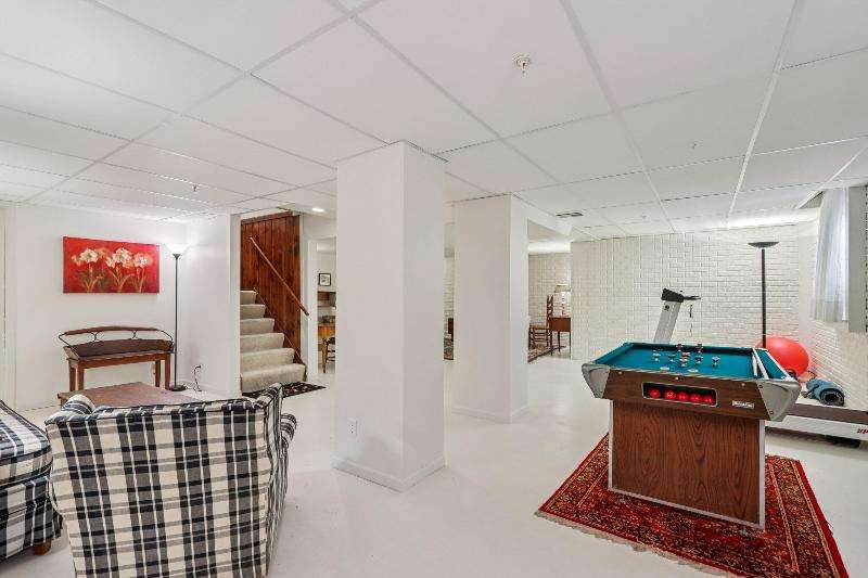 Prime condo location tucked at the back of the association on a quiet cul-de-sac, surrounded by gardens and green lawns. This traditional townhouse offers sunny east and south exposures that fill every room with light. Enjoy treetop and garden views from all windows and relax on the oversized newer deck overlooking private landscaping. A custom floor plan features a level living to dining room with built-ins, wet bar, gas fireplace, perfect for entertaining. The bright white kitchen has Corian counters, wood floors, and a dinette. Upstairs, a lofted library with pull-out couch adjoins the second bedroom and bath. Lower level provides ample storage and expansion potential. Stylish, comfortable, and quietly set in nature's beauty.