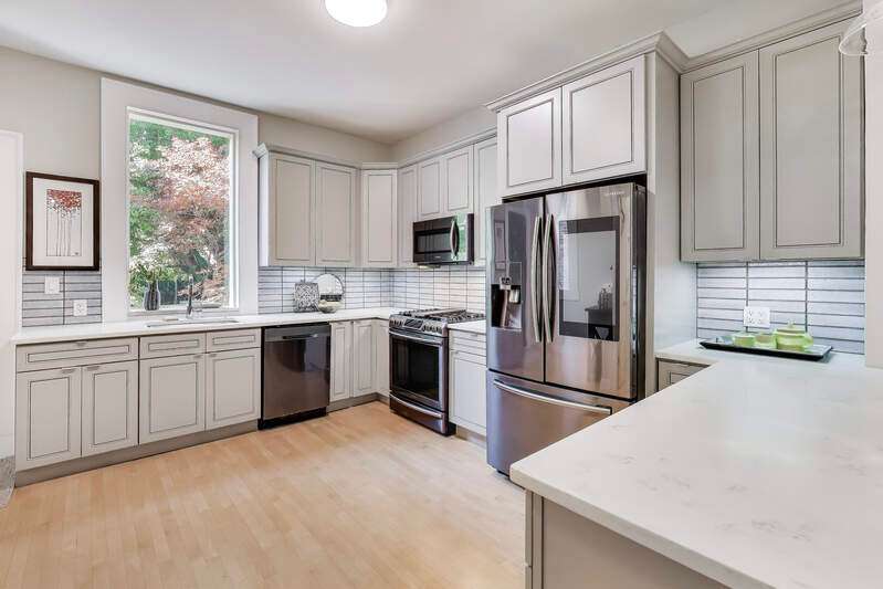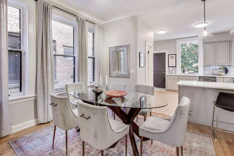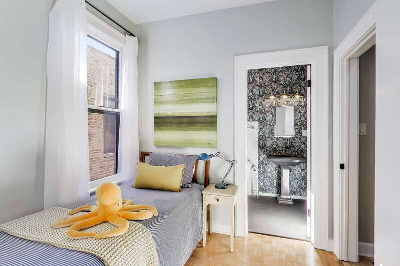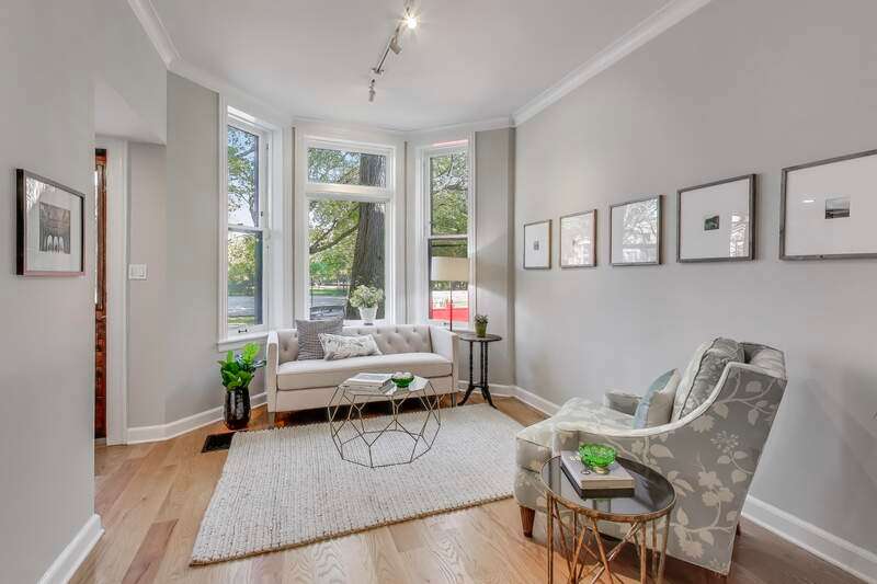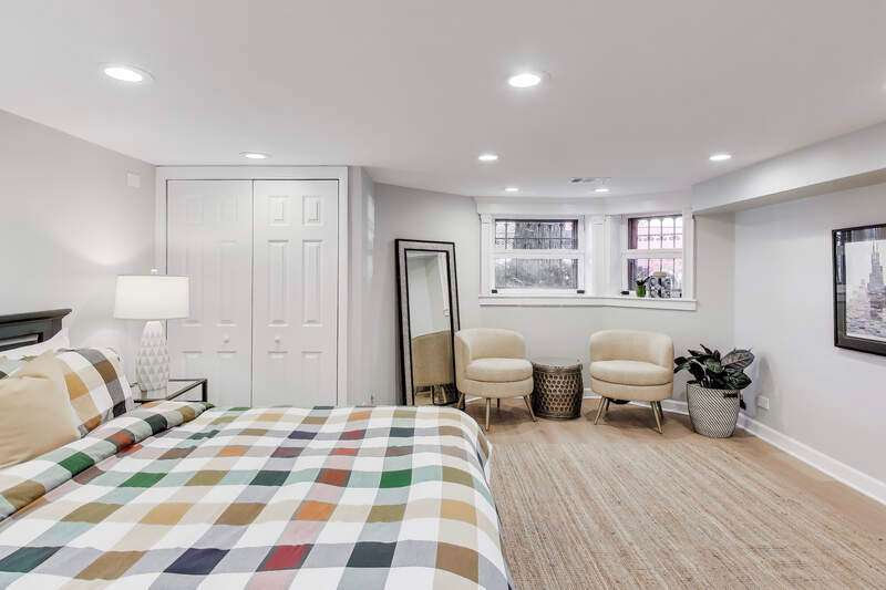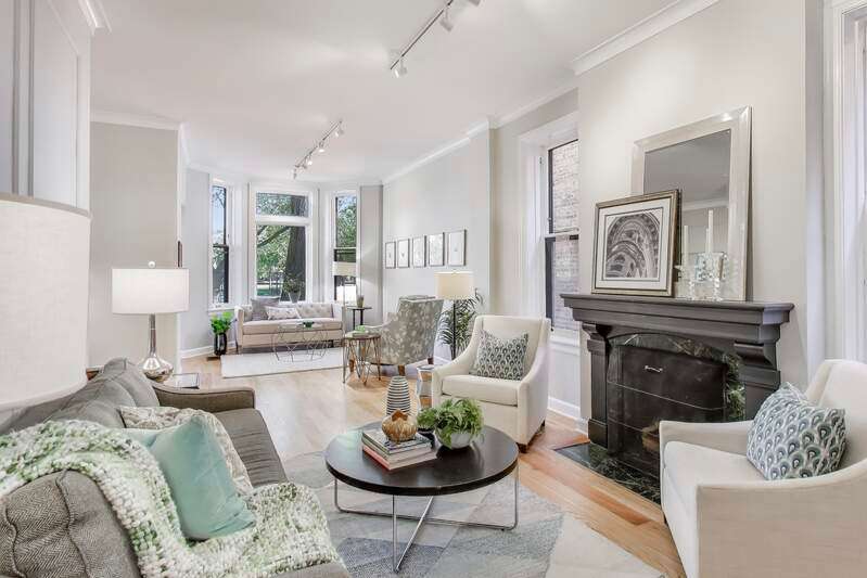 Breathtaking Greystone Row House PERFECTLY situated across the street from Nichols Park and super easy walk to shops, restaurants, Univ of Chi, transport, etc. Expect all the charm and character of a 1909 classic with all the updates and upgrades that honor the home and make for great living. Be TOTALLY surprised with the great light, high ceilings throughout and thoughtful + flex spaces. Main floor has double living room with wood burning fireplace, combo dining and oversized kitchen with loads of prep and serve space +stunning views in every direction, and a jewel of a powder room. Walk out to new deck, fenced in spacious and lush back yard. Upstairs find three bedrooms with ensuite baths, primary with an original fireplace and loads of light and more great views. Bright lower level is another great surprise with extra-large bedroom, family room, work room, laundry room, bath and loads of storage. Most work including tear off roof/HVAC/tuckpointing/kitchen and baths done in 2019, whole house refresh + new lower level floors, back deck, fenced yard in time for your visit! This is one happy house! Enjoy!