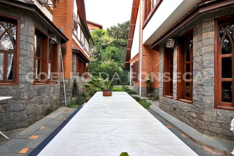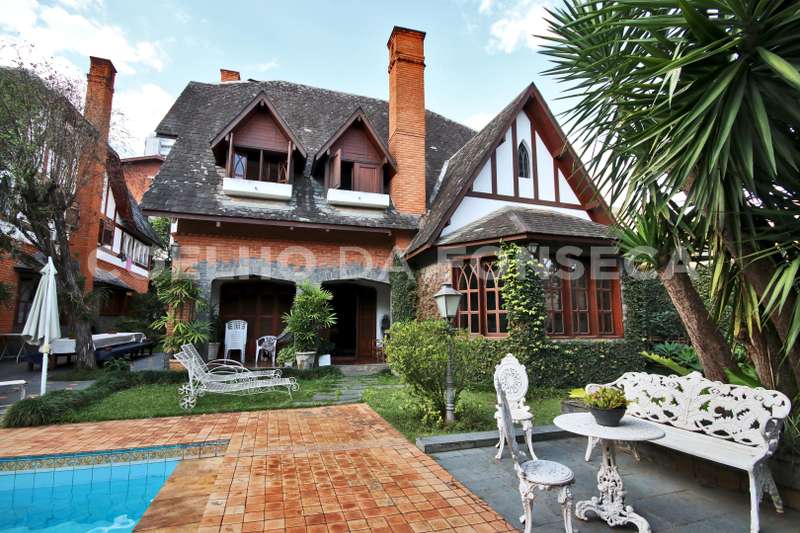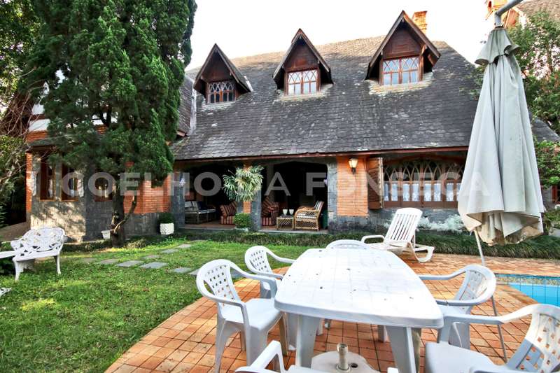 Charmosa residência, estilo normando, área externa ampla com jardim e piscina. São dois lotes e duas casas, em uma das melhores alamedas do condomínio. Possibilidade de vender separadamente!