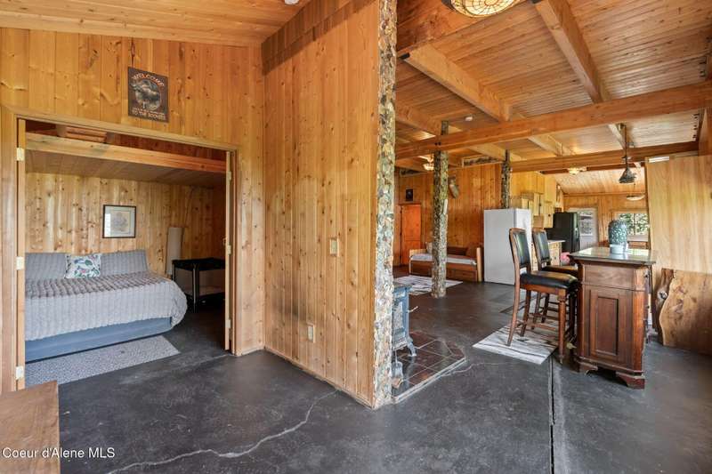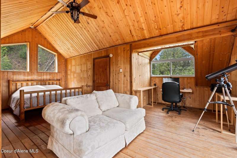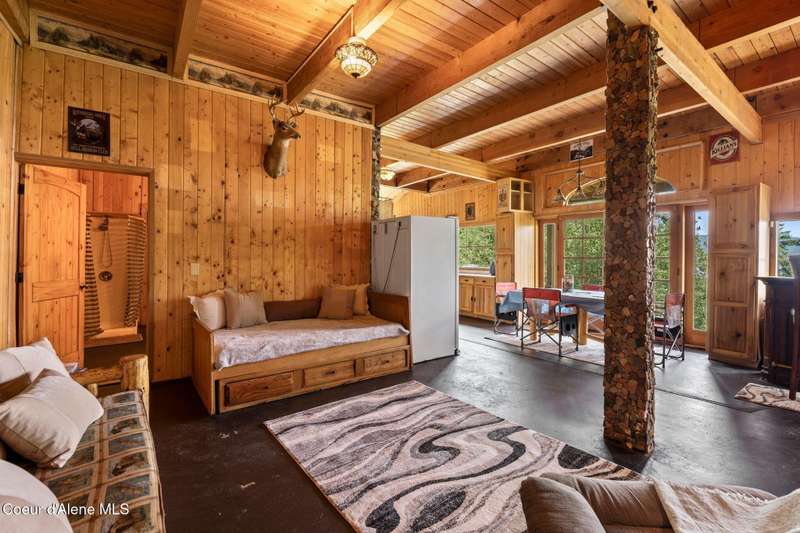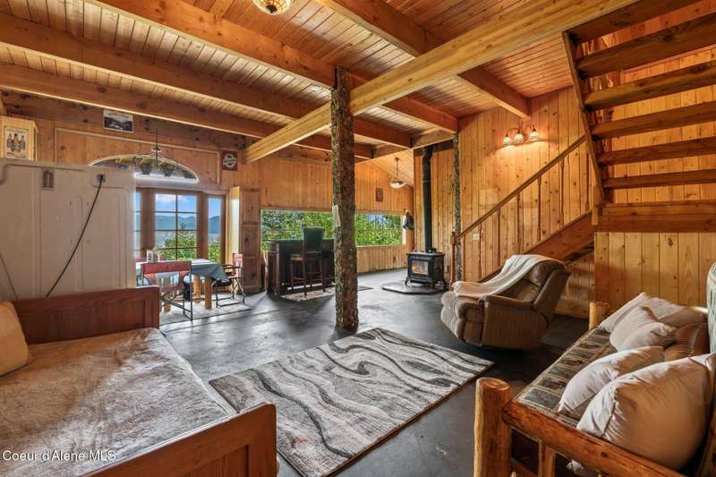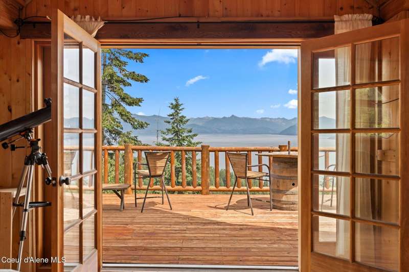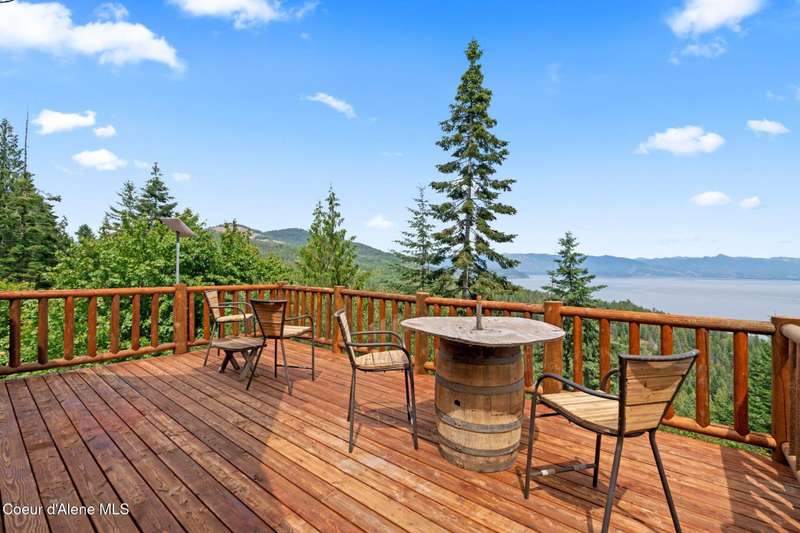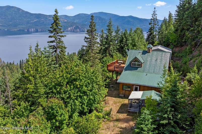Private retreat with panoramic views of Lake Pend Oreille, the Green Monarchs, and Grouse Mountain. Surrounded on three sides by thousands of acres of Forest Service land, this 2-bedroom (1 non-conforming), 1.5-bath home exudes rustic charm, featuring a cozy wood stove and a spacious primary suite with a private deck, walk-in closet, and jetted tub—perfect for unwinding after a day of adventure. Large windows in the open living area fill the home with natural light and showcase breathtaking views in every direction. A 24x32 shop includes a 768 sq. ft. guest apartment with a bathroom and private deck that captures the million-dollar views. Additional features include a wood shed, dog kennel, and powered outbuildings. Located just ¾ mile up a Forest Service road, this property offers ultimate privacy, abundant wildlife, and year-round recreation—fishing, hunting, hiking, and off-roading—all just minutes from the pristine waters of Talache Beach. Property is being sold as is and the sellers recently installed a brand-new septic system that is fully operational and in good working condition!