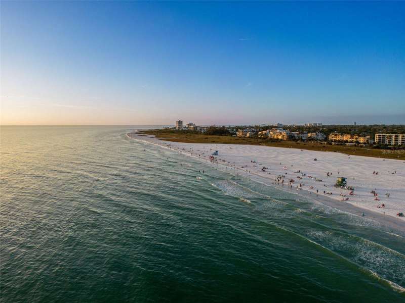 Vacation getaway, lucrative rental or full-time dream home, this Siesta Key residence is just steps from the powdery white sands of Siesta Key Beach. Some of the important features included a new roof, Ipe hardwood decks, brick paver drive and walkways, irrigation system, brand new stainless-steel appliances, two hot water heaters (one is tankless) and two a/c units. Step inside the open-concept great room, where neutral finishes, timeless travertine floors, and abundant natural light create an inviting ambiance. The kitchen is ideal for entertaining or quiet mornings at home, featuring rich wood cabinetry, granite countertops, counter-height seating, stainless-steel appliances. A bonus room adapts effortlessly to your needs, while the spacious guest quarters ensure privacy and comfort for family and friends. Three large guest bedrooms, two with ensuite bath, offer luxurious accommodations, while the private, top-floor primary suite is a sanctuary of its own. Retreat to your spa-inspired bathroom, revel in the enormous custom walk-in closet, or step onto the rooftop terrace. Outside, the lush tropical landscaping creates a secluded backyard oasis, perfect for relaxation. End each day with breathtaking sunset views from the rooftop terrace, a magical setting to unwind. With a two-car garage and a prime location just a short stroll to the vibrant shops and restaurants of Siesta Key Village, this home offers the very best of coastal luxury living. Don’t just dream of paradise, own it.