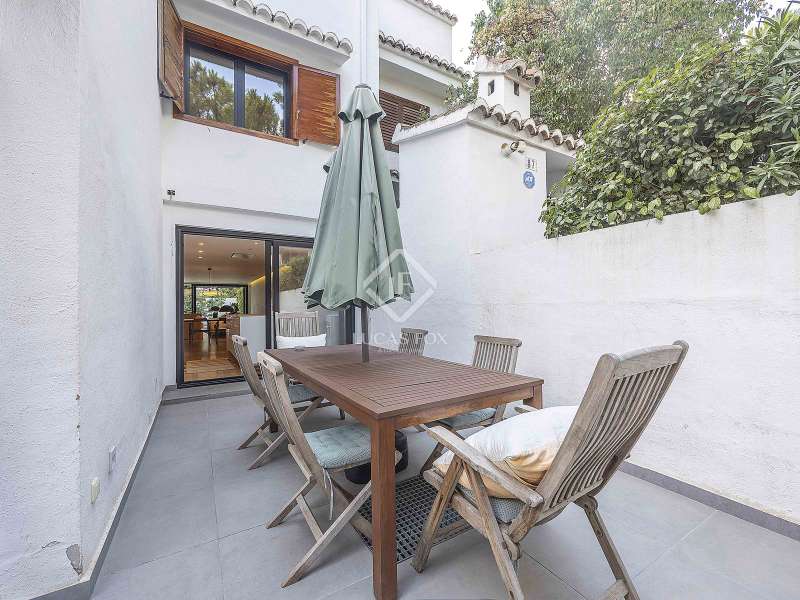 This impressive 318 m² semi-detached property is located in the prestigious Las Villas de Rocafort development , one of the most sought-after and highly valued residential areas in the Valencia metropolitan area. Recently renovated with top-quality materials and an elegant, modern design, the property is very spacious and bright, with a thoughtful layout over several floors. On the main floor , an elegant entrance hall leads to a spacious and bright living-dining room, conceived as the central space for family-friendly life. Its large windows allow in abundant natural light and open onto a cozy private terrace, ideal for enjoying evenings outdoors. Next to this is the modern open kitchen, with minimalist lines and equipped with high-end appliances . The kitchen access conveniently onto another terrace, perfect for breakfasts or informal meals exterior. It features a large central island and plenty of storage space. The first floor is used as a bedroom area and consists of two spacious, generously sized bedrooms with a large closet area and en-suite bathroom . This floor also features a pleasant entrance hall , which, thanks to its spaciousness, can be converted into a separate living room or a play area ideal for children. A third bedroom is also ideal as an study. Upon entering the attic, we are greeted by the generously sized main bedroom , with high ceilings and plenty of storage space thanks to its numerous built-in wardrobes. It has a large private bathroom with modern lines, a freestanding bathtub, and a large shower. In the floor , we find a separate utility room , a naturally ventilated staff bedroom , and a full bathroom . From here, there is direct access to the private garage with space for two cars and additional storage space. In terms of equipment, the property has ducted air conditioning on the top floor, mains gas radiators in all rooms, large slatted natural wood floor , double-chamber exterior carpentry with thermal and acoustic insulation, and a large number of built-in wardrobes. The exclusive Las Villas de Rocafort development offers a complete range of amenities and facilities: private security and 24-hour concierge service for added peace of mind, a large communal pool, ideal for enjoying the summer, a children's play area for the little ones, a social club, and spacious common areas. It also boasts an unbeatable location, nestled in a peaceful natural setting, yet also very well connected. Several public transport links are just a few minutes' walk away, as are the dining and entertainment options of Santa Bárbara's renowned venues. Its proximity to prestigious schools, amenities , and main access routes to Valencia make this property a perfect choice for both families and those seeking a first-class residential setting.