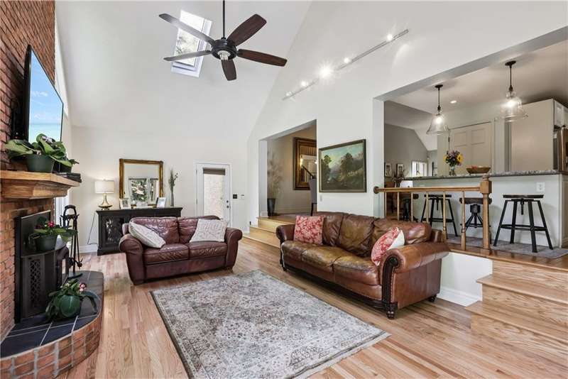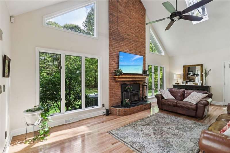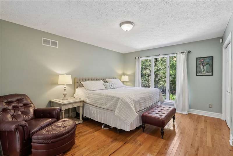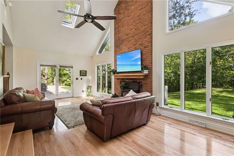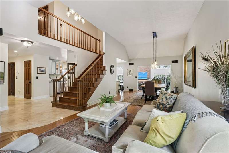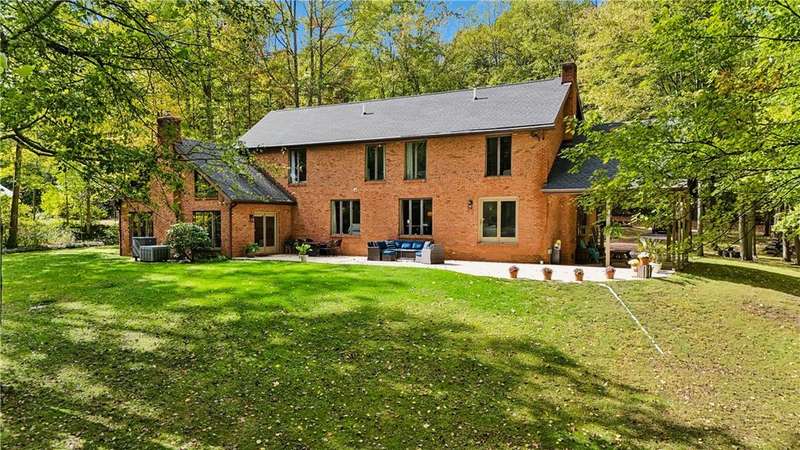 Unparalleled Architectural Excellence abounds in this exceptional one-of-a-kind 4800sqft brick sprawler showcasing lavish luxury, sleek expanses, and rare sophistication. Serenely nestled on a lush picturesque 1ac of park-like privacy perimetered by mature trees in coveted township?min to interstates, school, parks, shops. Striking airy architecture greets in travertine entry, which transitions to entertainment-ready sensationally-sized open LR/DR that cascades uninterruptedly to the "Signature" soaring cathedraled 2sty GR underscored in handsome Hw, cozied by hearty log Fp, and sundrenched by walls-of-windows that invite serenity in. Granite-clad amenity-rich gourmet kit of creme cabinetry, eat/serve peninsula, and travertine fl/backsplash, Unrivalled gamerm w/2xglass FrenchDr, Tucked den/office w/entry, Sumptuous 1stfl MBRw/spa-inspired marble BA, 4-5add BRs/4upscale BAs. Spectacular entertainement suite/liv quarters w/LR,DR,2ndkit,2ndfp,Br. Expansive open patio+covered patio! WOW!