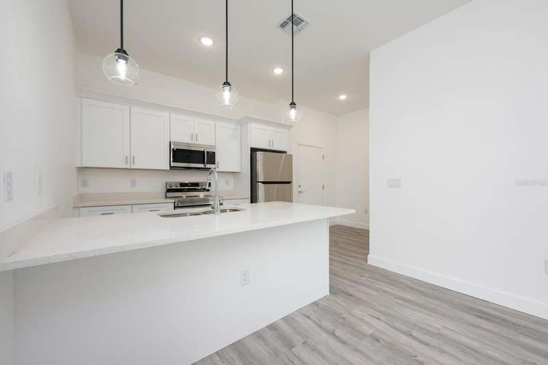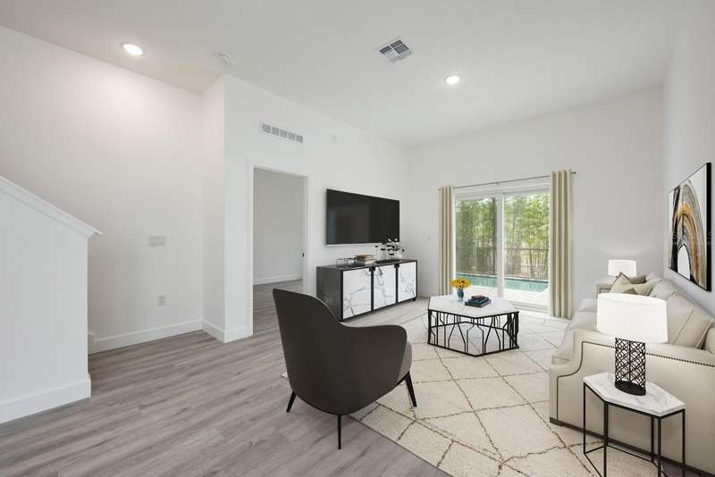 Under contract-accepting backup offers. One or more photo(s) has been virtually staged. Welcome to RESORT-STYLE LIVING in this nearly NEW, never lived in 5-bedroom, 4-bathroom corner-unit townhome located in the modern and vibrant Azur Resort community of Davenport. Built in 2023 and boasting over 2,000 SQUARE FEET of sleek, contemporary design, this beautifully appointed home offers flexibility as a primary residence, vacation retreat, or income-generating short- or long-term rental. An OPEN FLOOR PLAN allows for effortless movement between the Living and Dining areas, as well as the Kitchen. With TWO SPACIOUS PRIMARY SUITES—one on the main floor, each with a private en suite bathroom—and luxury vinyl plank flooring throughout the main living areas and bedrooms, comfort and style come standard. Enjoy your own PRIVATE SCREENED LANAI with a SPARKLING POOL, perfect for relaxing or entertaining in the Florida sunshine. The Azur Resort pampers residents and guests alike with UPSCALE AMENITIES including a modern clubhouse, community pool and fitness facility. Just twenty minutes from Walt Disney World and surrounded by renowned golf courses, shopping, and dining, this location offers the perfect balance of excitement and convenience. NEARBY ACCESS to I-4, US-27, and SR-429 makes commuting and exploring Central Florida a breeze, with quick trips to Universal Studios, Margaritaville, Posner Park, ChampionsGate, and Orlando International Airport all within reach. Whether you're looking to invest or enjoy the Florida lifestyle year-round, this AZUR RESORT GEM is an incredible opportunity waiting to be yours. Don’t miss your chance to own this modern townhome in the heart of Florida’s vacation paradise!