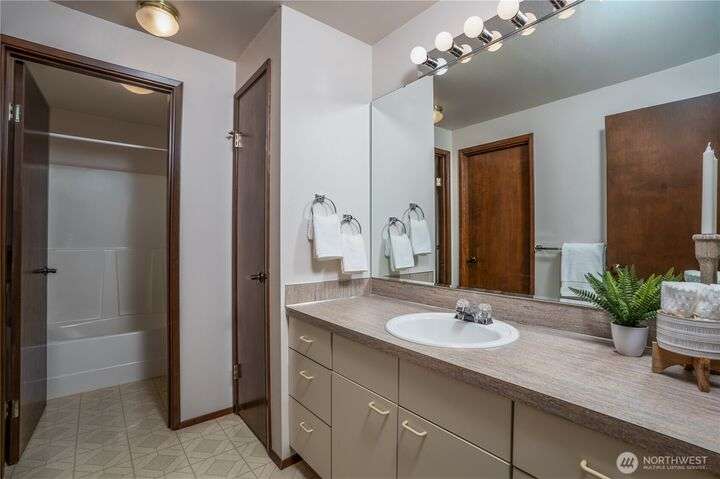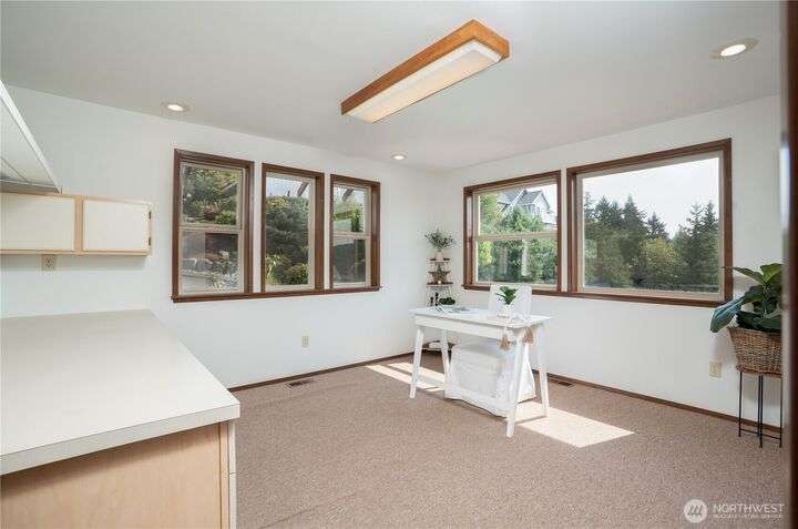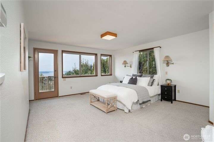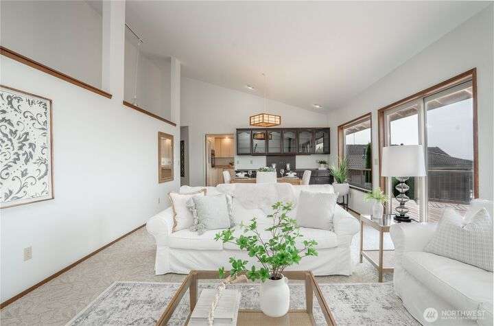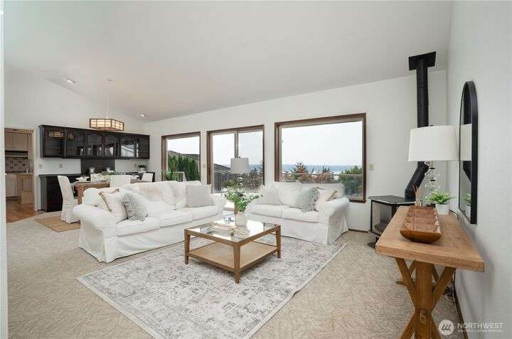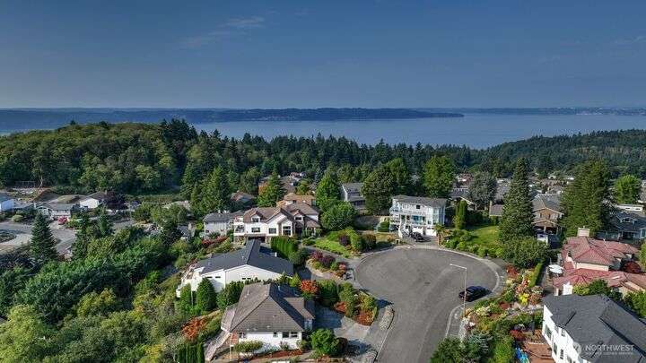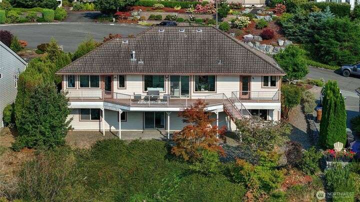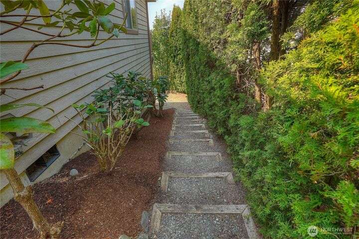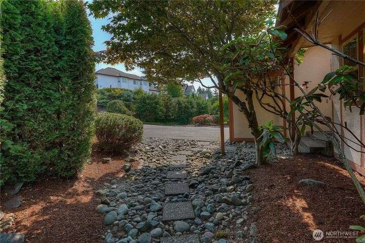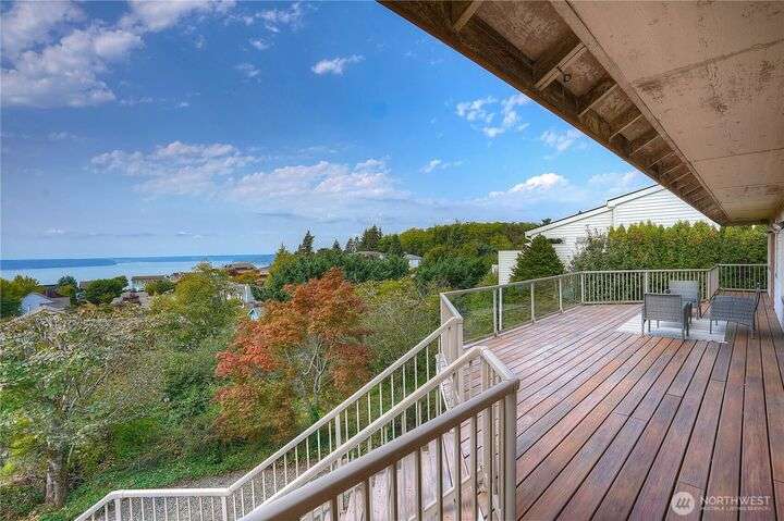 Let the tranquility of the Japanese garden embrace you & prepare you to enter a home designed to share the beauty of the western views. Stepping from the foyer you move into the light filled living space with vaulted ceilings & a front seat to sunsets over Commencement Bay & the Olympics. Step out to the large deck to enjoy morning coffee or a glass of wine after dinner. Meal prep & cookie making is fun in the kitchen with lots of cabinets. Spacious primary suite w/bath on main floor. Room for office or art on main. Downstairs are 3 additional bedrms & full bath plus family rm w/patio & views, too!. This lower level could be a separate living space! Create the backyard you want by terracing, adding a sports court, garden space, play space!