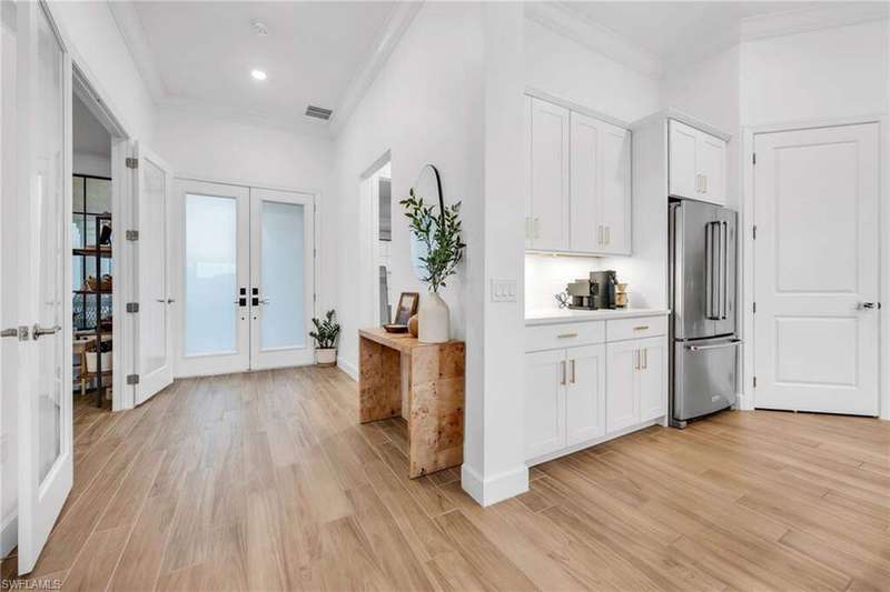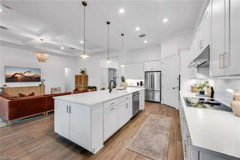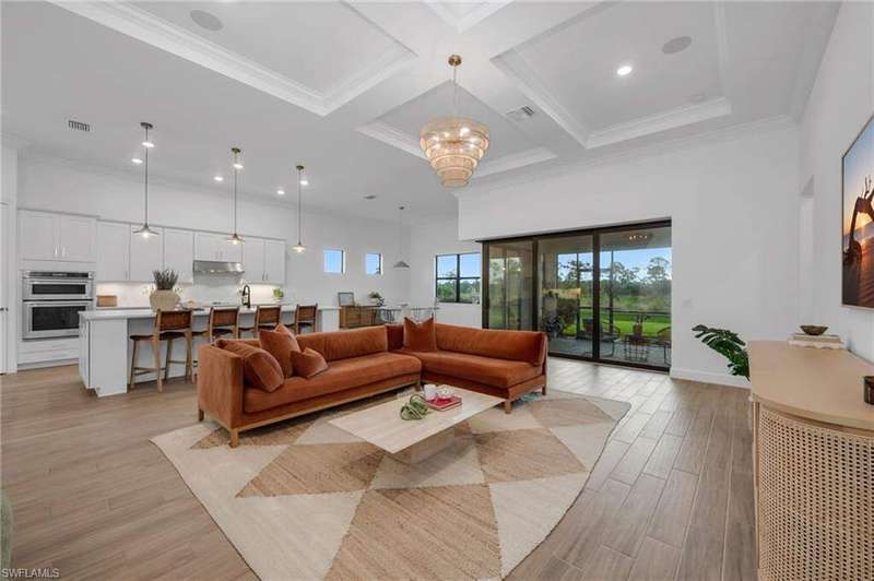 The only Pinnacle Estate Series Pulte home currently on the market on a cul-de-sac, this remarkable residence offers a rare combination of exclusivity, privacy, and refined design, setting it apart as one of the most sought-after properties in the community. Tucked away at the end of a quiet street and backed by a lush, protected preserve, this home blends elegant craftsmanship with serene natural surroundings to create a truly exceptional living experience. Meticulously crafted, the layout features three spacious bedrooms, a versatile den, three full bathrooms, and an oversized three-car garage. Step inside to discover a bright and airy interior filled with natural light, coffered ceilings, wide-plank wood-look tile flooring, and 8-foot interior doors, all contributing to a sense of elevated comfort and space. The expansive great room flows seamlessly into a chef-inspired kitchen, complete with crisp white shaker cabinetry, soft-close drawers, quartz countertops, built-in wall ovens, a sprawling center island with pendant lighting, and a full suite of stainless-steel appliances. Whether you're entertaining guests or enjoying a quiet evening at home, this space is both functional and visually striking. Zero-corner sliding glass doors open fully to a covered lanai that overlooks the preserve, offering panoramic views and absolute serenity. The backyard provides ample space to create your dream outdoor retreat; be it a custom pool, summer kitchen, or tranquil garden escape. The primary suite serves as a private sanctuary, offering peaceful green views, a spa-like en-suite bathroom with dual vanities and a frameless glass shower, and a large walk-in closet. Two additional guest bedrooms, a flexible den, and a separate laundry room round out the thoughtful floor plan. The oversized three-car garage and paver driveway add practicality and curb appeal. Life in The Place at Corkscrew means access to an unmatched array of resort-style amenities, including a sprawling pool with cascading waterfalls, a spa, splash pad, cooling cabanas, and an exhilarating 100-foot water slide. Residents also enjoy a state-of-the-art fitness center, movement studio, tennis, pickleball, basketball, and bocce courts. Dining and social options include an indoor restaurant, outdoor bar, bourbon lounge, and cafe-plus community fire pits, live entertainment, and more. Additional features include a dog park, playground, child watch services, full-service spa, and 24-hour manned gate access for added peace of mind. Offering a rare blend of thoughtful design, natural beauty, and resort-caliber living, this home is a one-of-a-kind opportunity for the discerning buyer seeking space, style, and a vibrant lifestyle in one of Southwest Florida's most desirable communities.