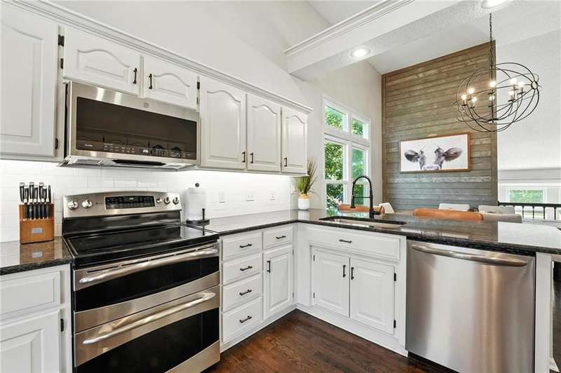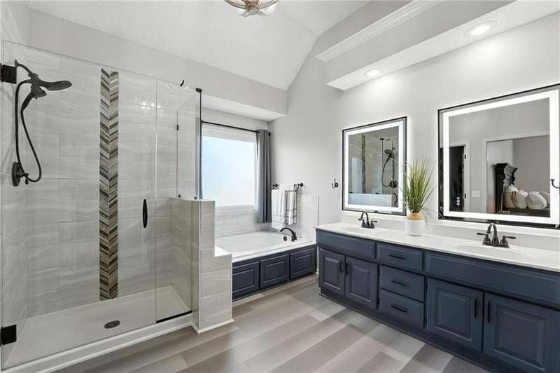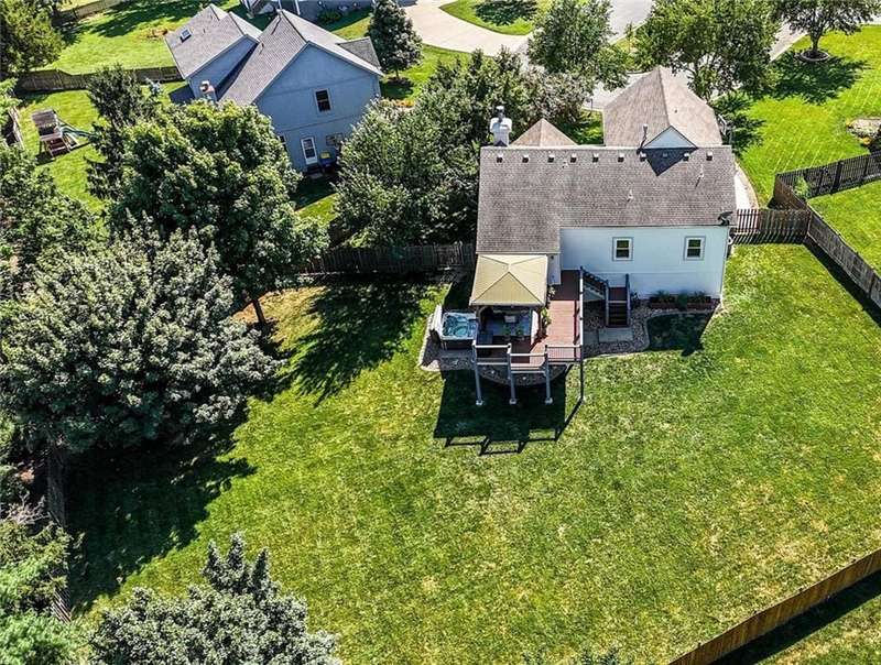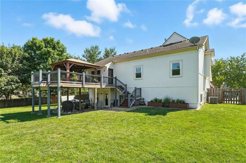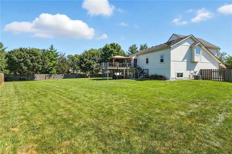 You will want to call this HOME! Stunning HOME in Blue Valley on gorgeous half acre lot. Looking for extra yard space to play ball or put in a swimming pool (splish/splash); THIS IS IT!!! This home is in pristine condition with so many beautiful updates (see update sheet for details)! Open floor plan with beautiful updated decor makes this home fun and easy to entertain. Stunning hardwoods on main level. Kitchen has been beautifully updated and include granite countertops, stainless (newer) appliances and elegant white cabinetry. Large living room w/ fireplace is open to kitchen area. New stair carpet is an eye catcher the moment you walk in the door. Primary bedroom suite is located on its own level and you will love the large closet space (2 walk-in closets) and private bathroom w/ jetted tub and walk-in shower. Finished basement includes family room/rec room with electric fireplace and wet bar. Fourth bedroom with bathroom is also located in basement which makes it perfect for an older child or mother-in-law suite. Sub-basement has also been finished and currently is a great workout room. Oversized garage w/ new door. Large, fenced yard is professionally landscaped with mature trees providing much privacy. Covered deck with wood wall for privacy and perfect for a TV will allow hours of enjoyment. Or spend evenings hanging out in your hot tub on covered patio. New HVAC. New paint inside and out! You will NOT want to MISS out on this beautiful home in much-desired Green Meadows. Great location close to 69 HWY, Town Center and many awesome restaurants. Walk to Blue Valley Schools! Walking nature trails throughout neighborhood with playground and picnic area. Call me for a private showing!