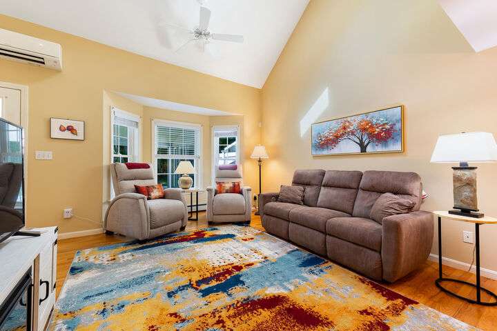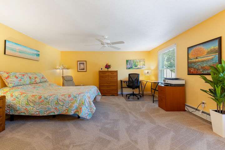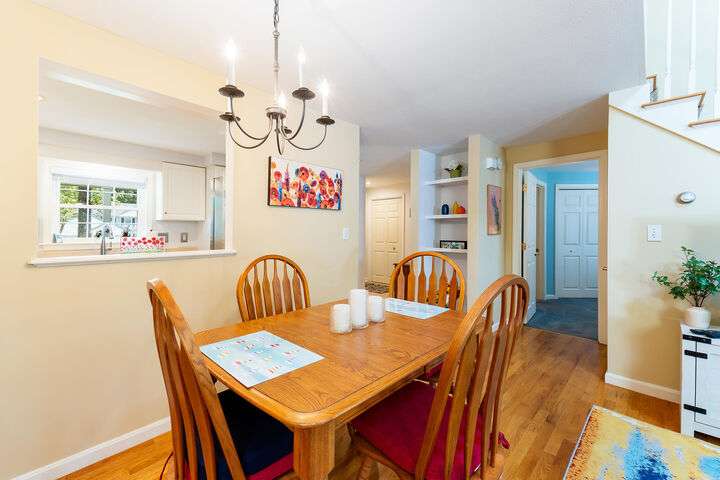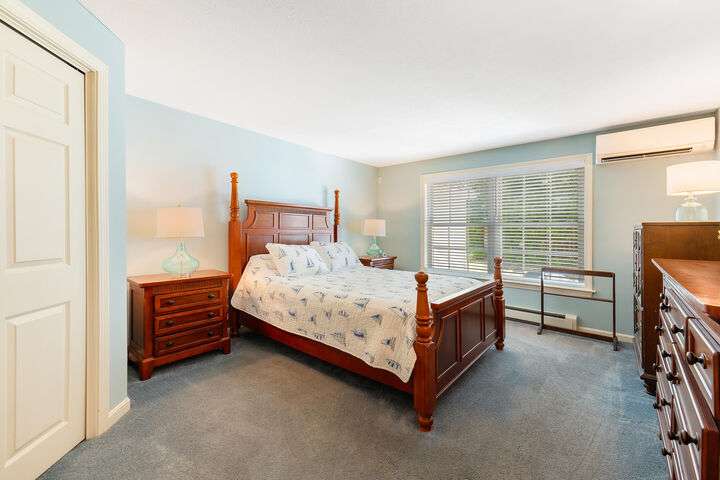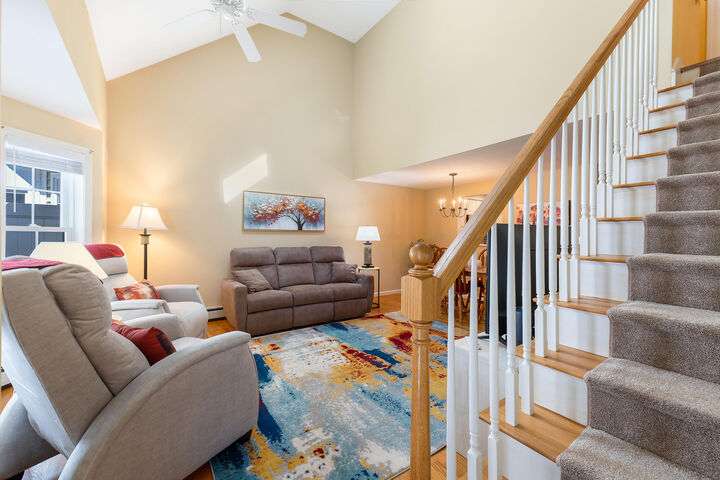 Welcome to this move-in ready 2 bedroom 2 bath condo in a sought-after neighborhood with miles of walking space and a welcoming community atmosphere. The first floor features a freshly painted primary bedroom/bath with convenient first-floor laundry and an open dining/living area filled with natural light. Enjoy year-round comfort in the three-season sun porch with a propane heater, which leads directly to a private patio, perfect for grilling & outdoor gatherings. Upstairs, the loft offers brand-new laminate flooring, built-in shelving, and flexible space ideal for a home office or additional entertainment area. The second primary bedroom boasts new carpeting and new bathroom flooring. Additional highlights include a one-car garage with direct entry, a full dry basement for storage, and recent upgrades such as a two-zone heat pump, hot water heater, and dishwasher. Located close to beaches, restaurants, shopping, downtown, and the turnpike, this turnkey condo combines comfort, convenience & community. Open House Saturday 11/1, 11-1