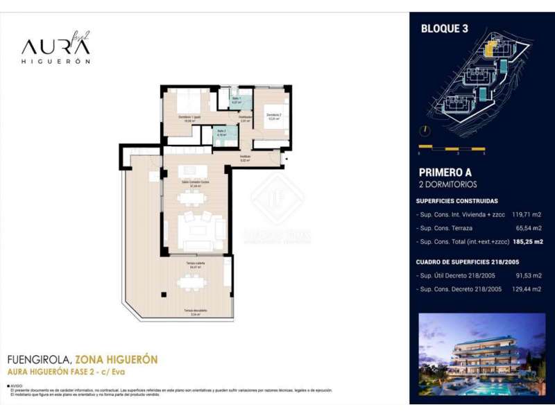 Lucas Fox presents Aura Higuerón, a private new build development with luxurious features, exceptional qualities and panoramic views of the Mediterranean Sea, high in the Higuerón area, a distinguished community in Benalmádena, Costa del Sol. The exquisite residential complex of Aura Higuerón stands as a low-density jewel, composed only of 33 exclusive residences, meticulously distributed in three majestic blocks. This apartment on the first floor has clearly differentiated day and night areas . Upon entering, the day area is arranged on one side, with the living-dining room and the open-plan kitchen, with access to a huge terrace, equipped with an outdoor kitchen and shower and a chill-out area. Back at the entrance, on the other side, there is a double bedroom , a bathroom and the magnificent main bedroom with its private bathroom and dressing room. The property has spacious and bright rooms, thanks to the open-plan kitchen and large floor-to-ceiling windows, while offering unmatched comfort. In addition, each property includes underground parking and storage room. Aura Higuerón presents exclusive details and spaces that adapt to your preferences, with countless options available (see quality report). In addition, you will enjoy exclusive features of the development that include splendid swimming pools with sea views, as well as heated indoor pools, each located in its respective block, accompanied by its exclusive gym and spa areas . All of this is protected by a rigorous access system using security codes, which guarantees the privacy and tranquility of the development. Aura, presented under a visionary concept of integration, is located in a unique natural environment, with special attention to the conservation of native species. In addition, the Aura area offers a wide range of included amenities and amenities, such as organic gardens, extensive sustainable gardens of more than 100,000 m², picnic and rest areas , bicycle and pedestrian paths, paths for walking and jogging, parks for pet friendly and plenty of entertainment options. The outstanding location of Aura, at the top of the El Higuerón region, gives its privileged inhabitants panoramic views of the coast and the Mediterranean Sea, which consolidates Aura as an exclusive development. In the area near Aura Higuerón, you can enjoy a wide range of activities, amenities and amenities, in an enclave strategically located between different urban centers, without giving up privacy. You will be just 15 minutes away from Malaga international airport and just 20 minutes from both the centre of Malaga and the centre of Marbella. If you are looking for privacy, luxurious features, exceptional qualities and panoramic views of the Mediterranean Sea, do not hesitate to contact us for more information.