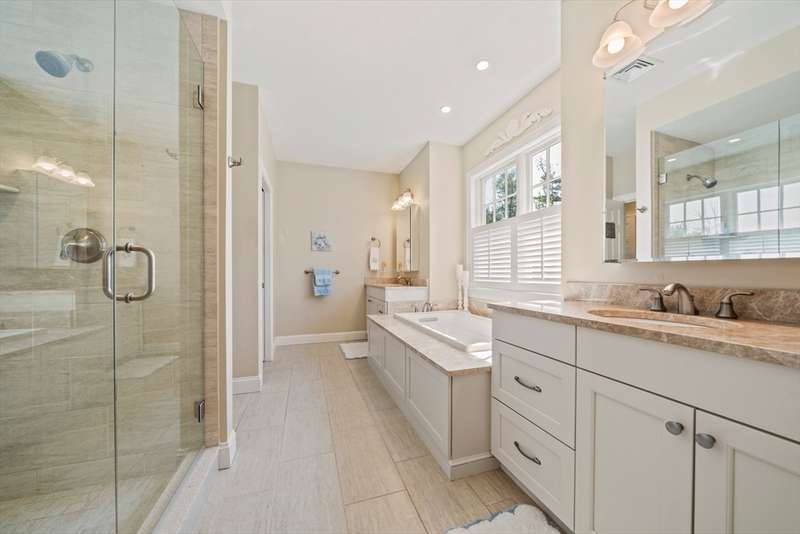 Welcome to Cook Estates, where luxury coastal living meets unparalleled flexibility. This 4,823-square-foot Lindsay-style stand-alone condo is your gateway to the ultimate New England lifestyle. Situated just over a mile from Cohasset village with exclusive Sandy Beach access, this property offers peaceful seclusion plus great accessibility with access to Boston via ferry and Greenbush train in under an hour. The open floor plan, centered around a cozy see-through fireplace, is flooded with natural light while the four-season sunroom and two outdoor spaces create endless entertaining possibilities. Two spacious en-suite bedrooms complete the main level for seamless first floor living. The sunlight-filled ground level walkout features its own private patio and includes a private bedroom with en-suite bathroom, dedicated office and home gym, media room and half bath, plus kitchenette bar area. This high-end, move-in ready home offers maintenance free luxury in a private coastal setting.