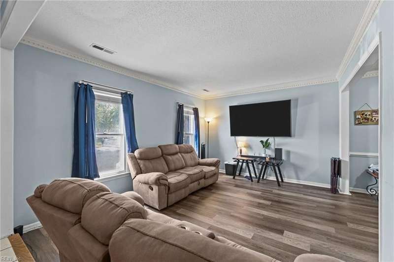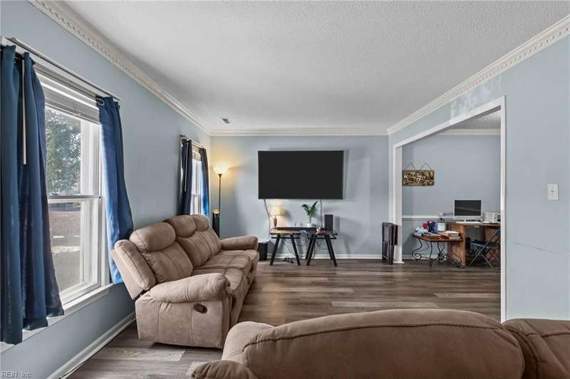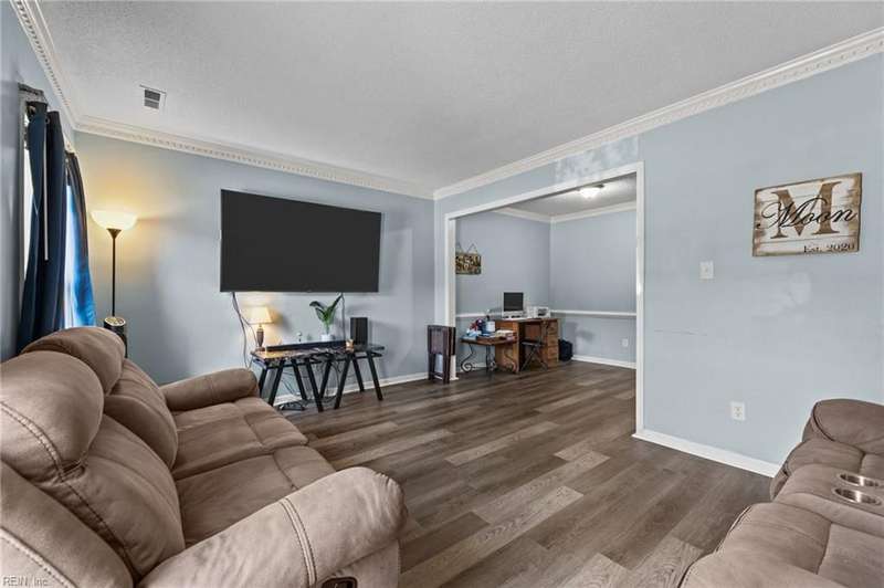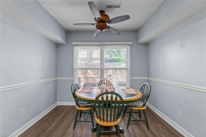Incredibly spacious and nicely updated 3 bedroom 2.5 bath townhouse offering 1,968 square feet of comfortable living in the heart of Virginia Beach. Gleaming LVP flooring throughout the main living areas, a cozy wood-burning fireplace, and a large eat-in kitchen perfect for gatherings. This home boasts a family room, formal dining room and great room. The primary bedroom is a true retreat, filled with natural light and plenty of space to relax. Enjoy mornings or evenings on the charming back patio, shaded by mature trees for privacy and peace. Perfectly situated near military bases, Town Center, interstates, Lynnhaven Mall, and just minutes from the beach, this home offers convenience and lifestyle all in one. Move-in ready with no HOA fees!